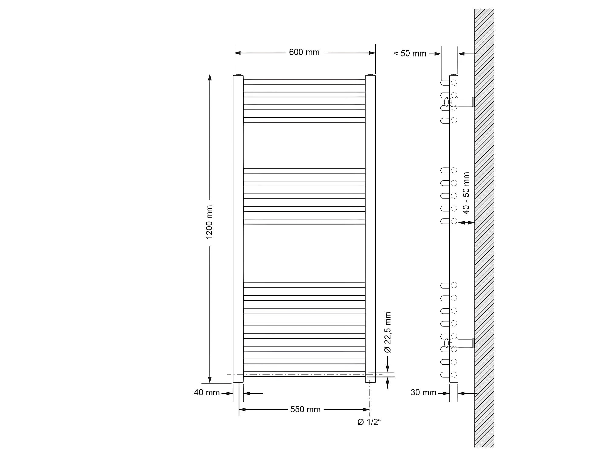 ECD Germany Radiateur Sèche-Serviettes Sahara - 600 x 1200 mm - Chrome - Connexion Latéral - sans Kit de Raccordement - Forme Courbé