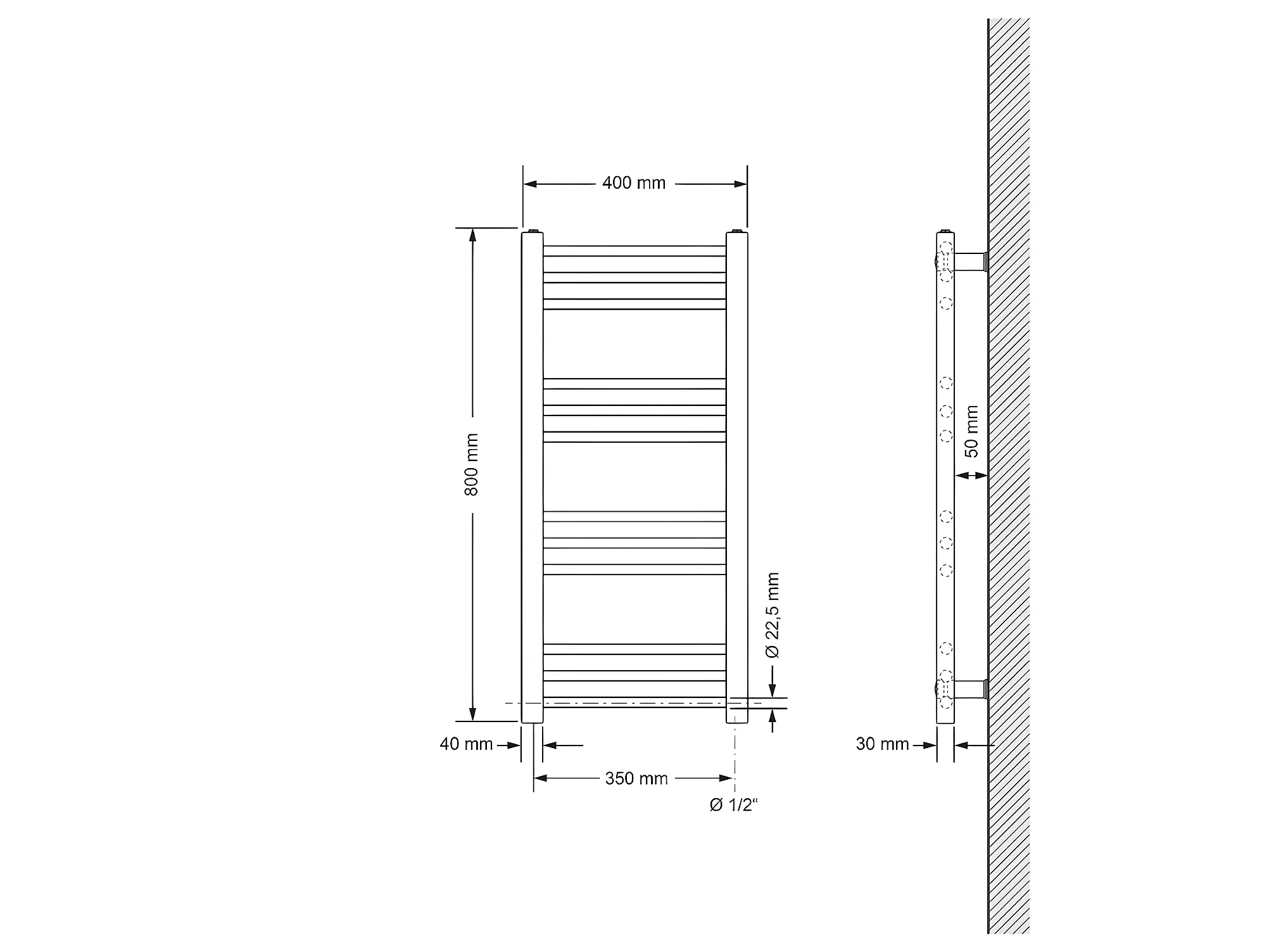 ECD Germany Sèche-Serviettes Design Sahara - 400 x 800 mm - Anthracite - Connexion Latéral - Forme Droit