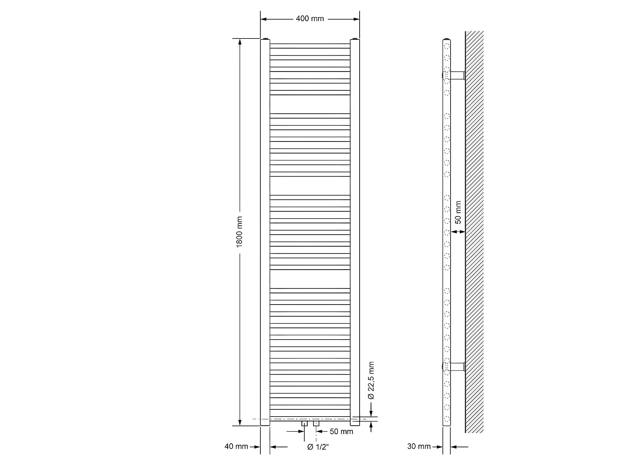 ECD Germany Sèche-Serviettes Sahara Non Électrique - 400 x 1800 mm - Chrome - Connexion Central
