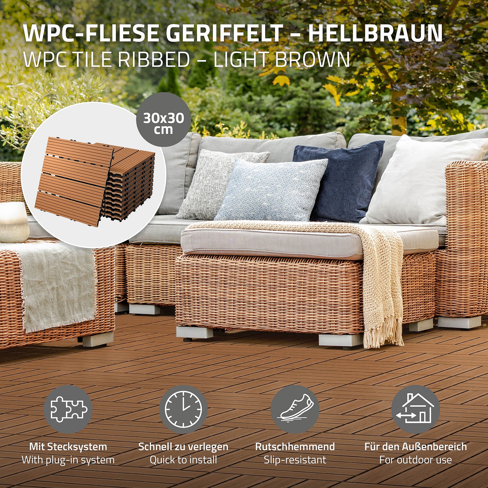 ECD Germany WPC Carreaux 30x30 cm - 44 Pièces par 4m² - avec Aspect Bois - Marron Clair - avec