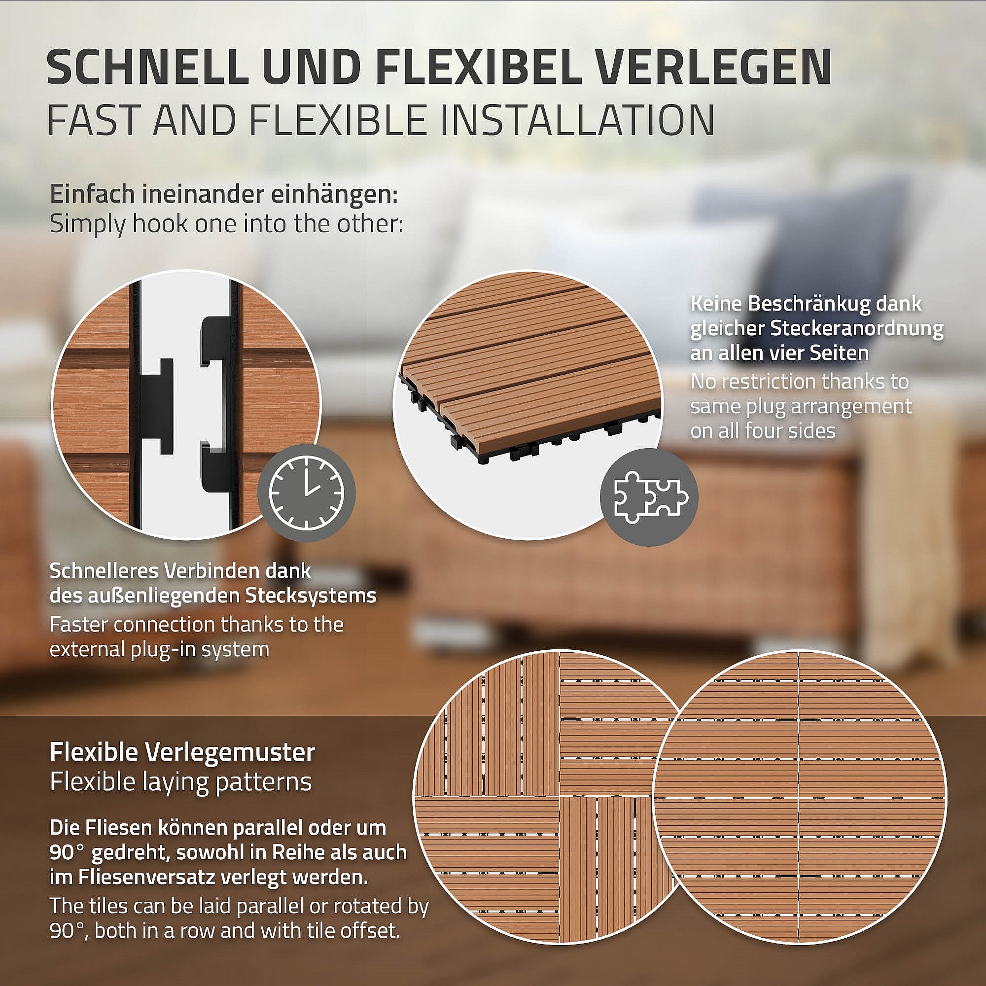 WPC Carreaux 30x30 cm 33 Pièces par 3m² avec Aspect Bois ECD Germany