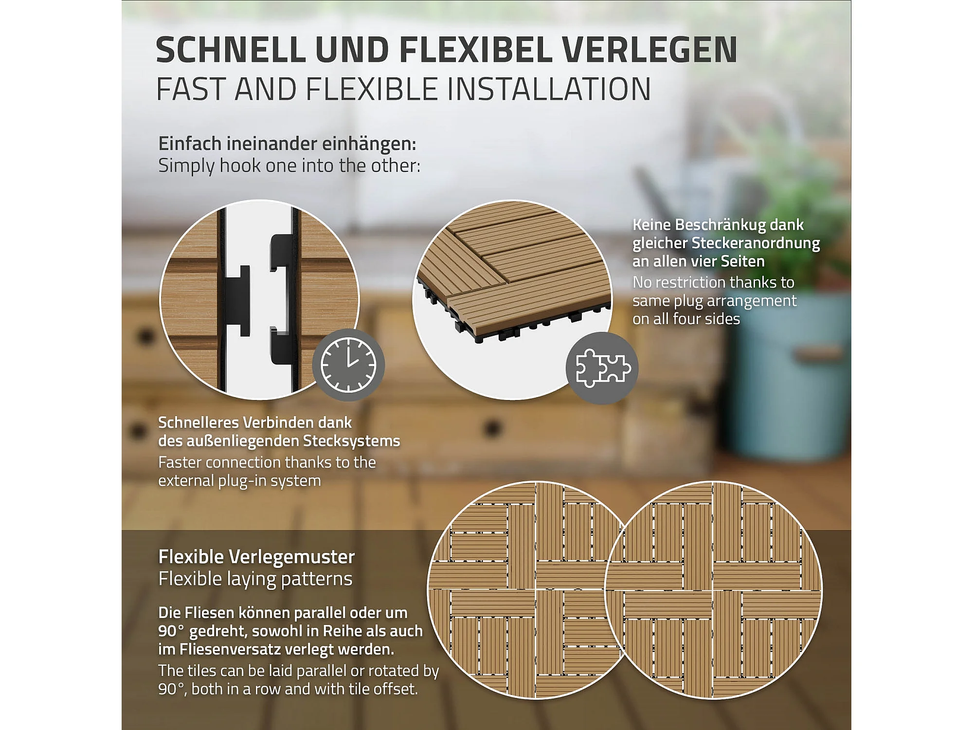 WPC Carreaux 30x30 cm 22 Pièces par 2m² avec Aspect Bois Marron Clair ECD Germany