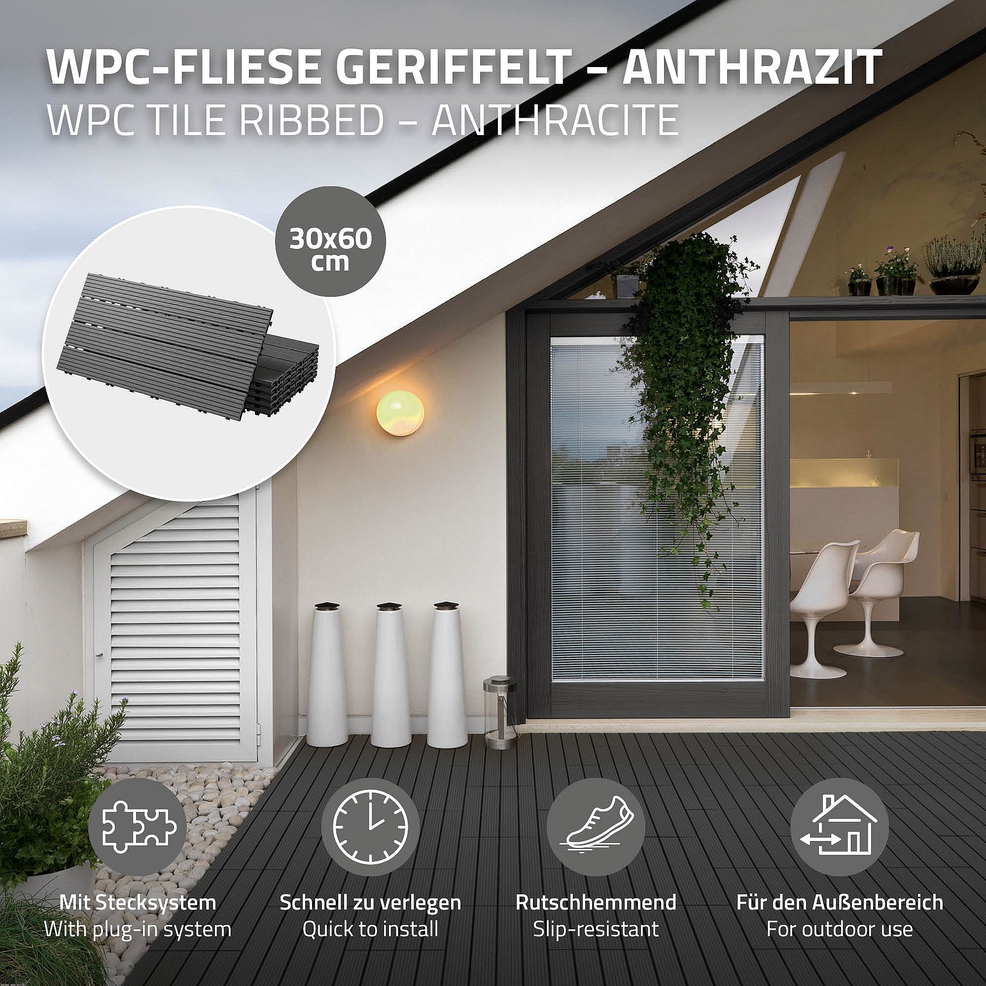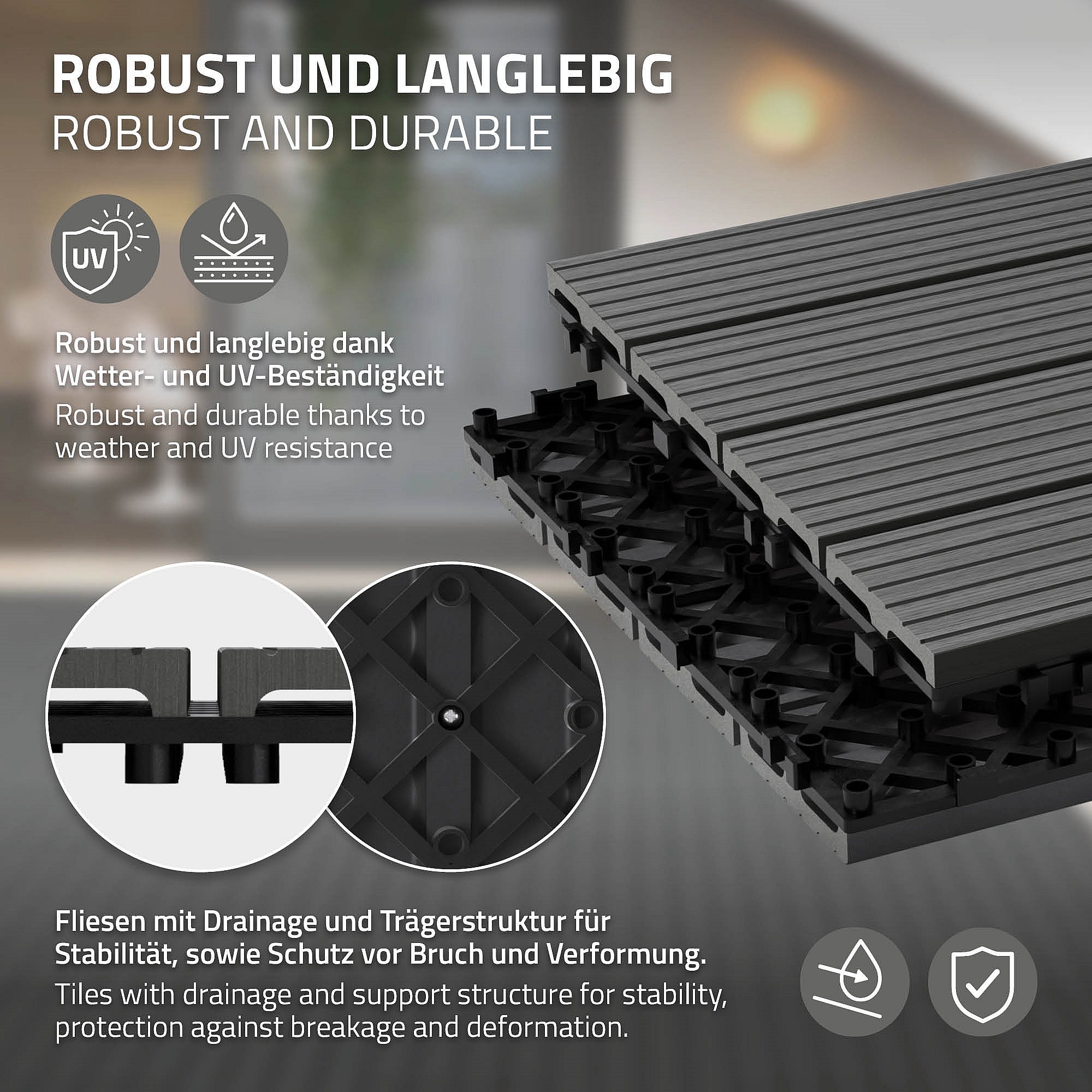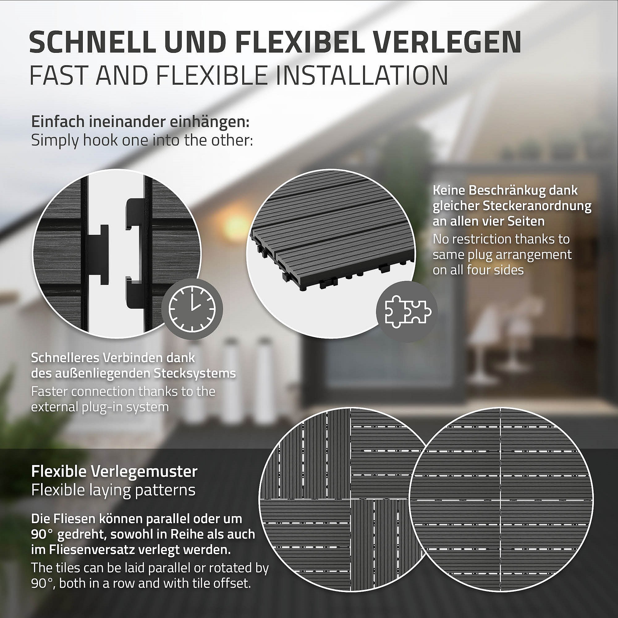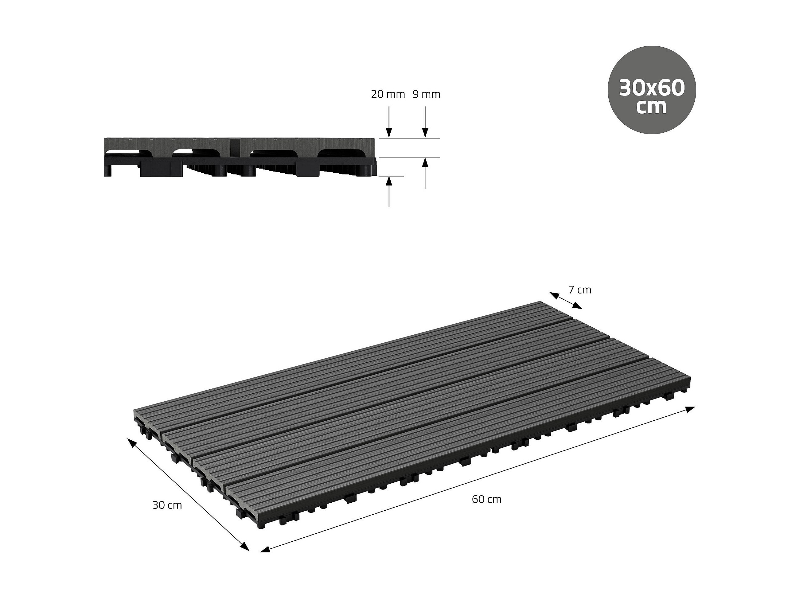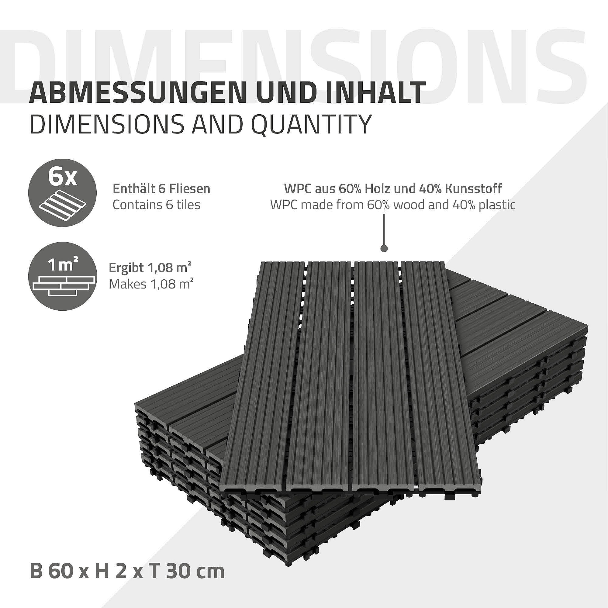 WPC Carreaux de Terrasse 60x30 cm 30 Pièces par 5m² avec Aspect de Bois ECD Germany