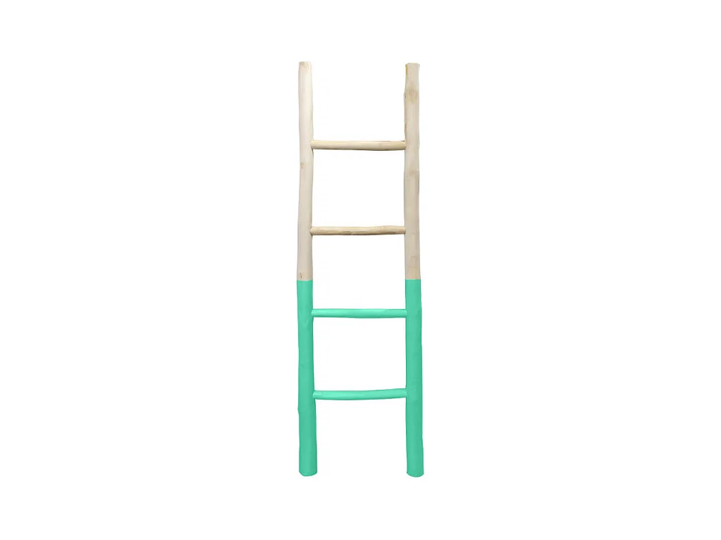Echelle décorative en bois exotique blanchi et vert d'eau - SCALA