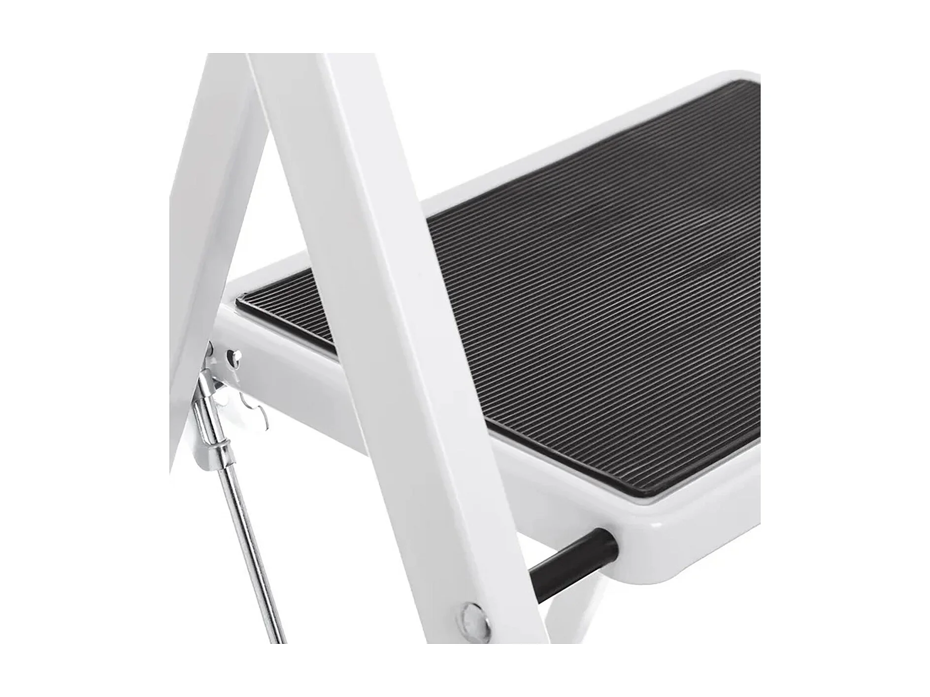 Echelle, Escabeau avec 2 marches en acier coloris blanc - Longueur 45 x Profondeur 54 x Hauteur 82 cm