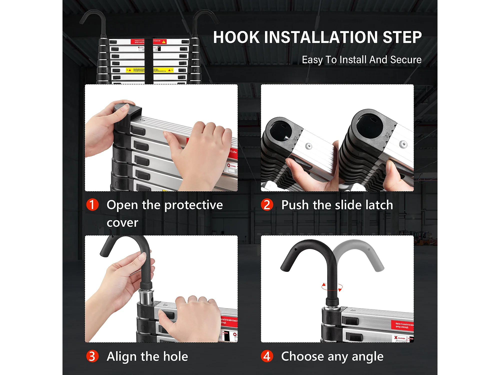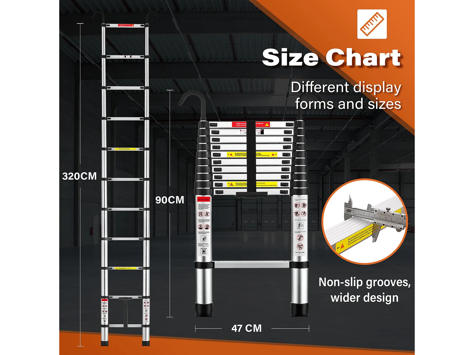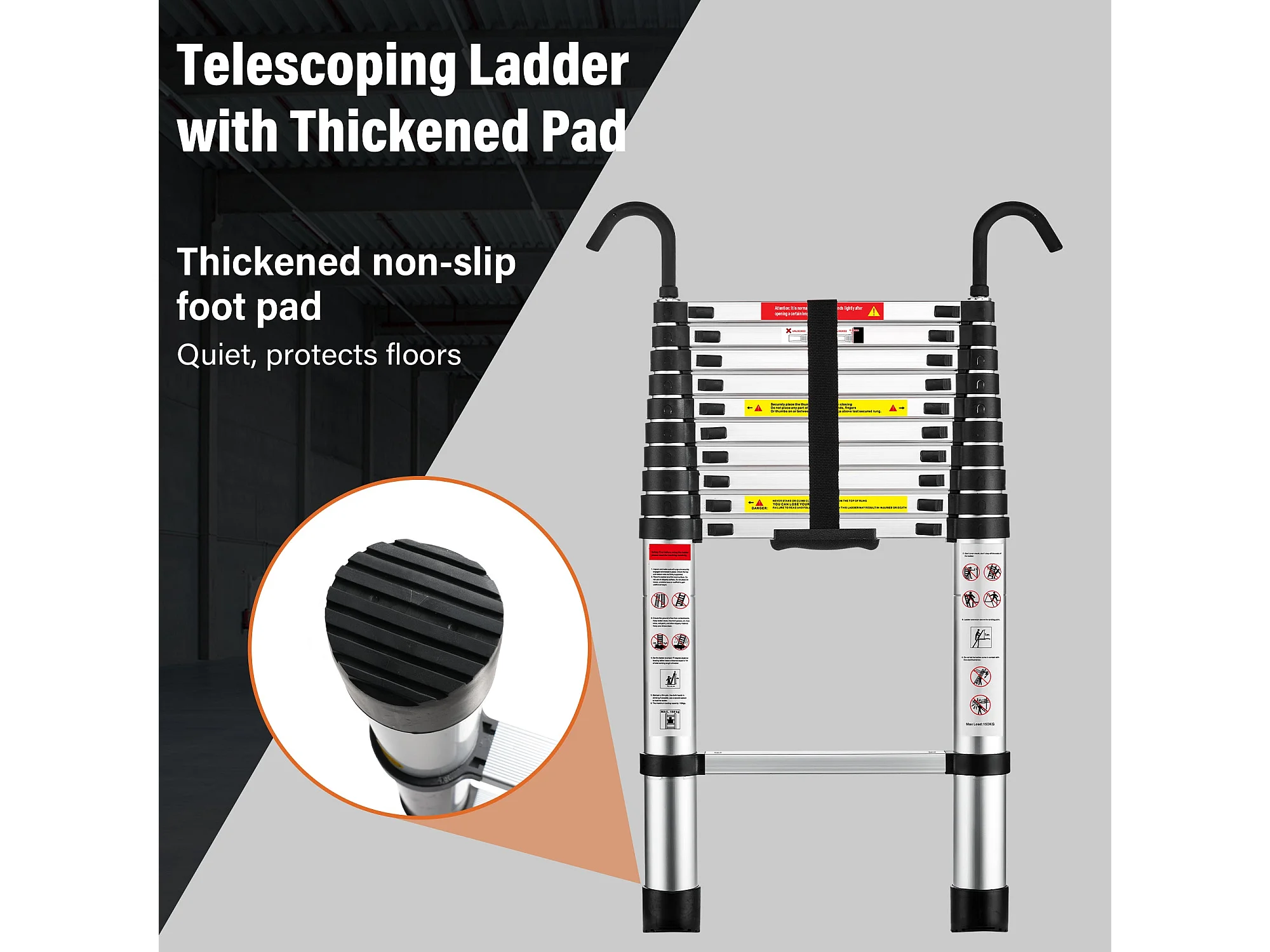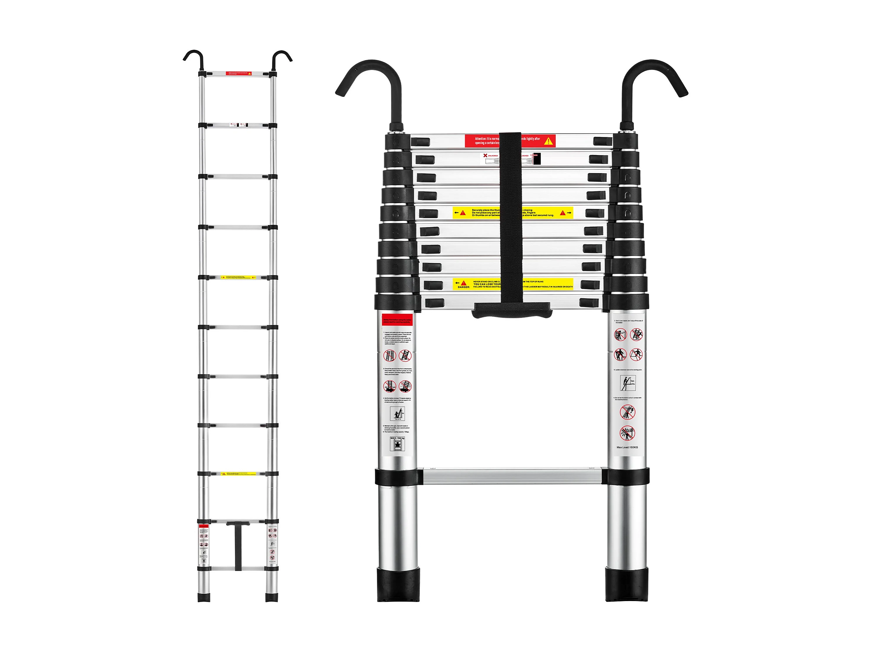 Échelle Telescopique 3,2 M en Aluminium, Escabeau Telescopique Pliable crochet amovible, Charge Max 150 kg