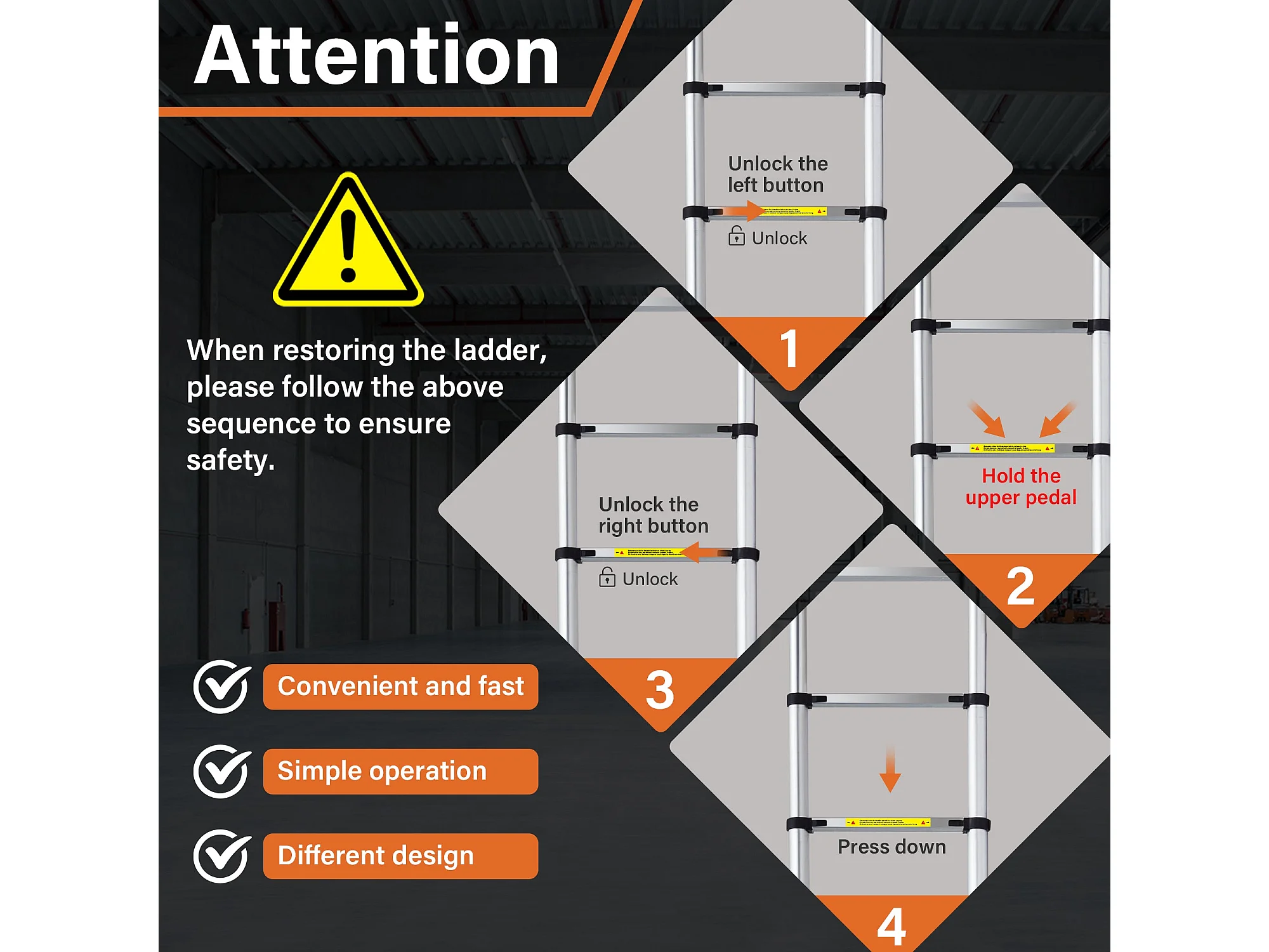 Échelle télescopique pliante en aluminium de 4,4 mètres avec main courante, capacité de charge maximale de 150 kilogrammes