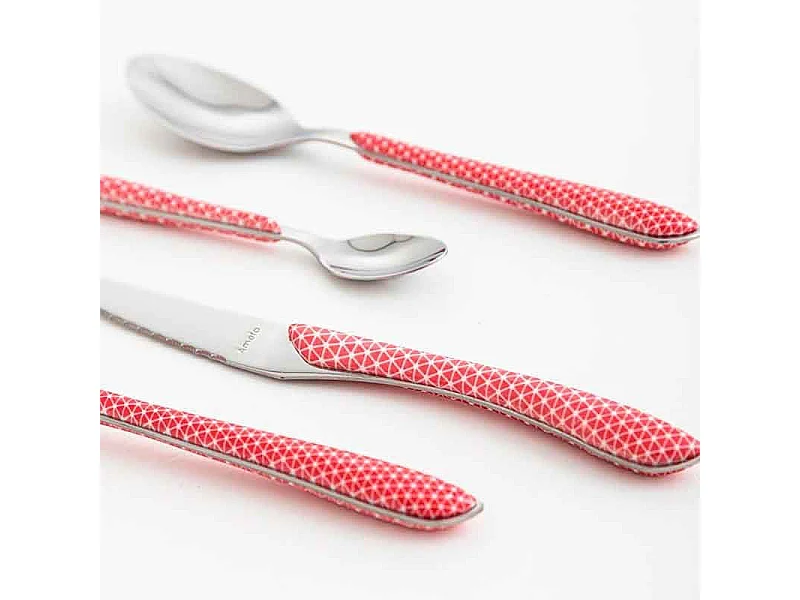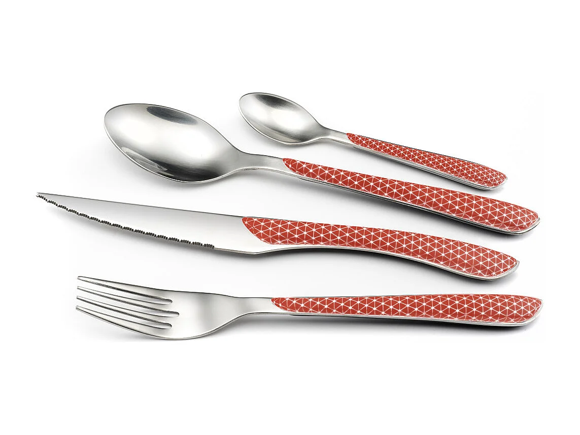 Eclat Geo Rouge & Blanc - Ménagère 24 pièces