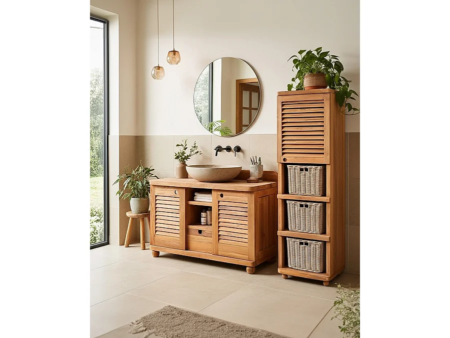 Eclipse - Meuble de salle de bain en teck massif