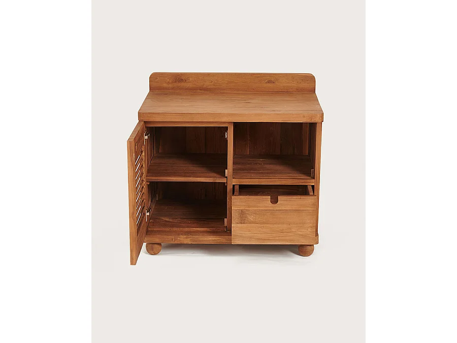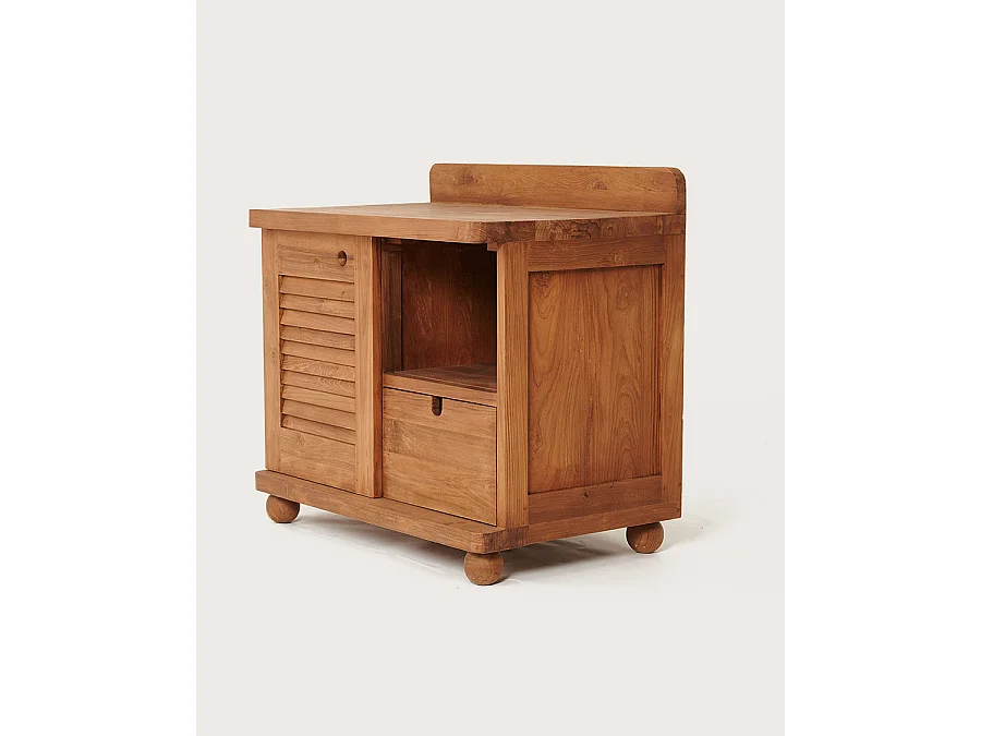 Eclipse - Meuble salle de bain en teck porte persienne 90 cm