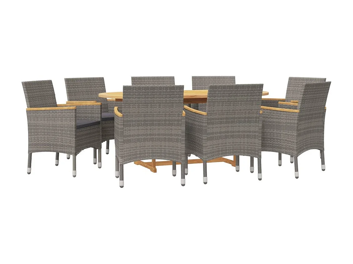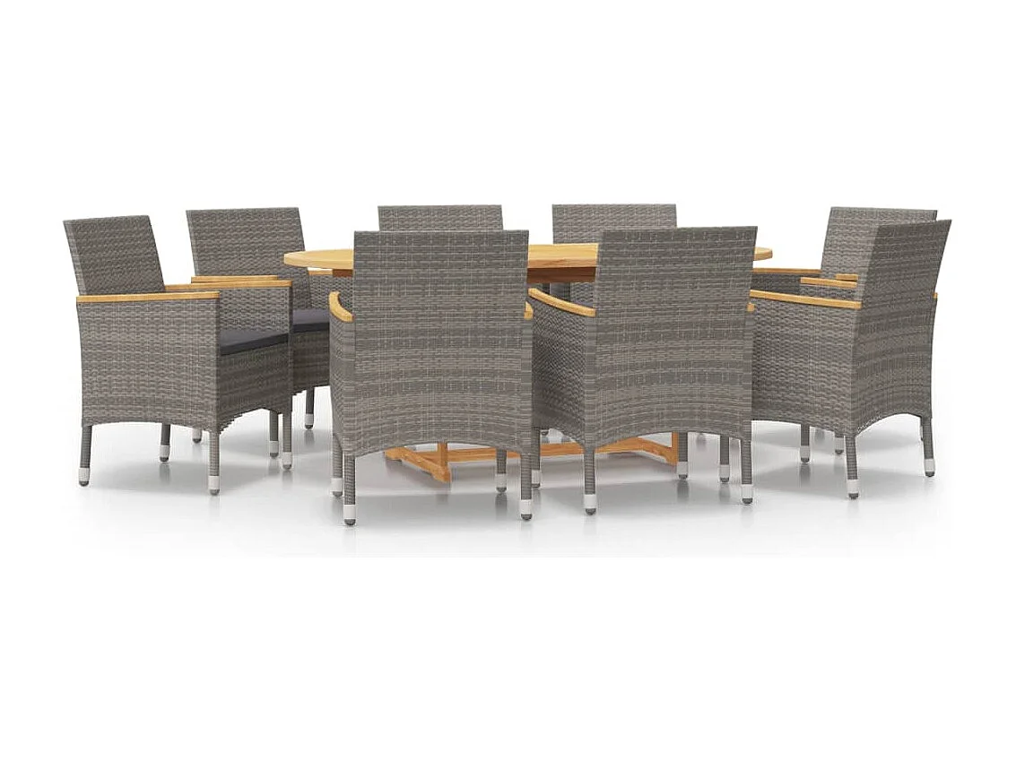 Edda Ensemble à manger de jardin 9 pcs avec coussins Gris