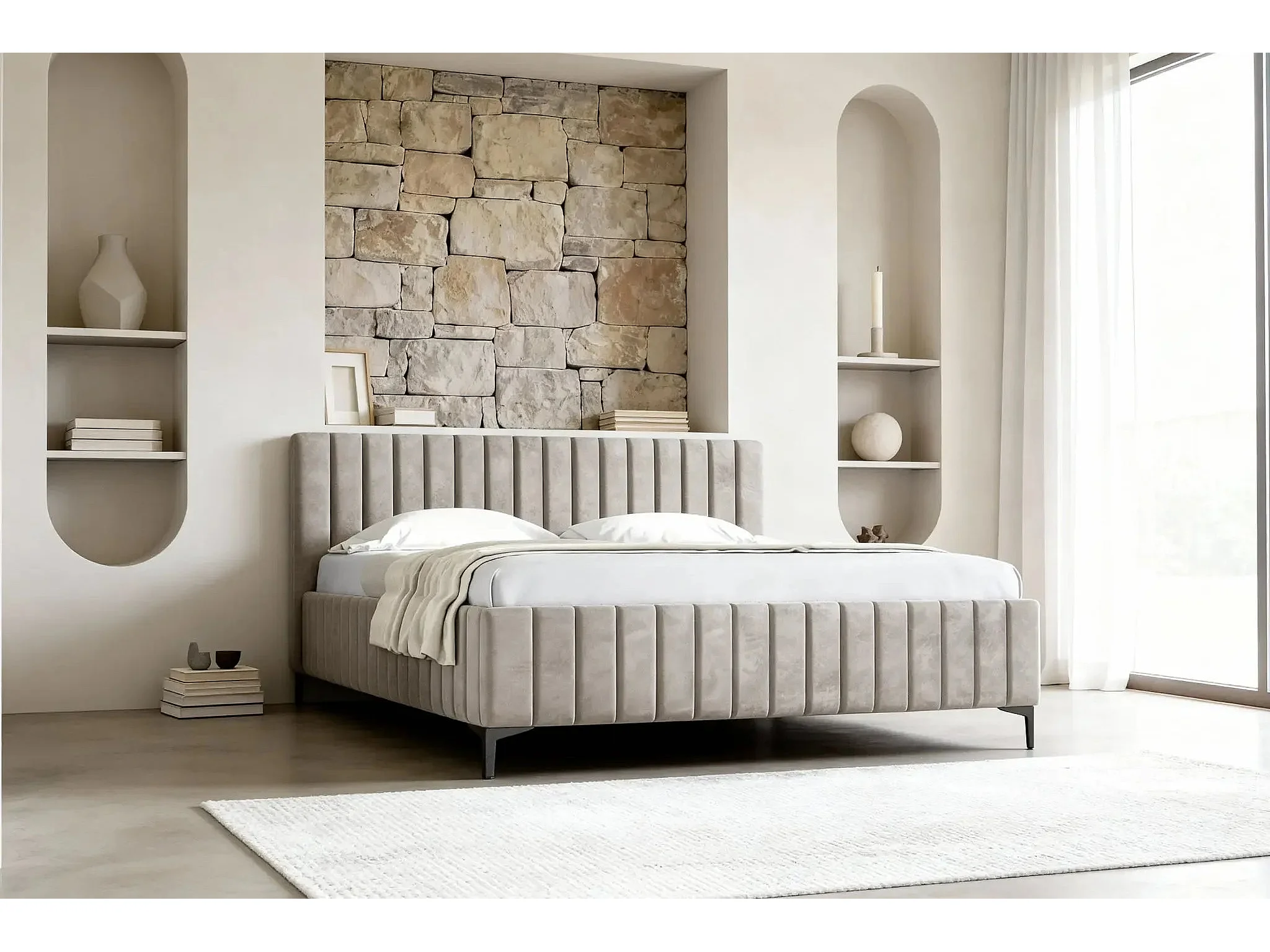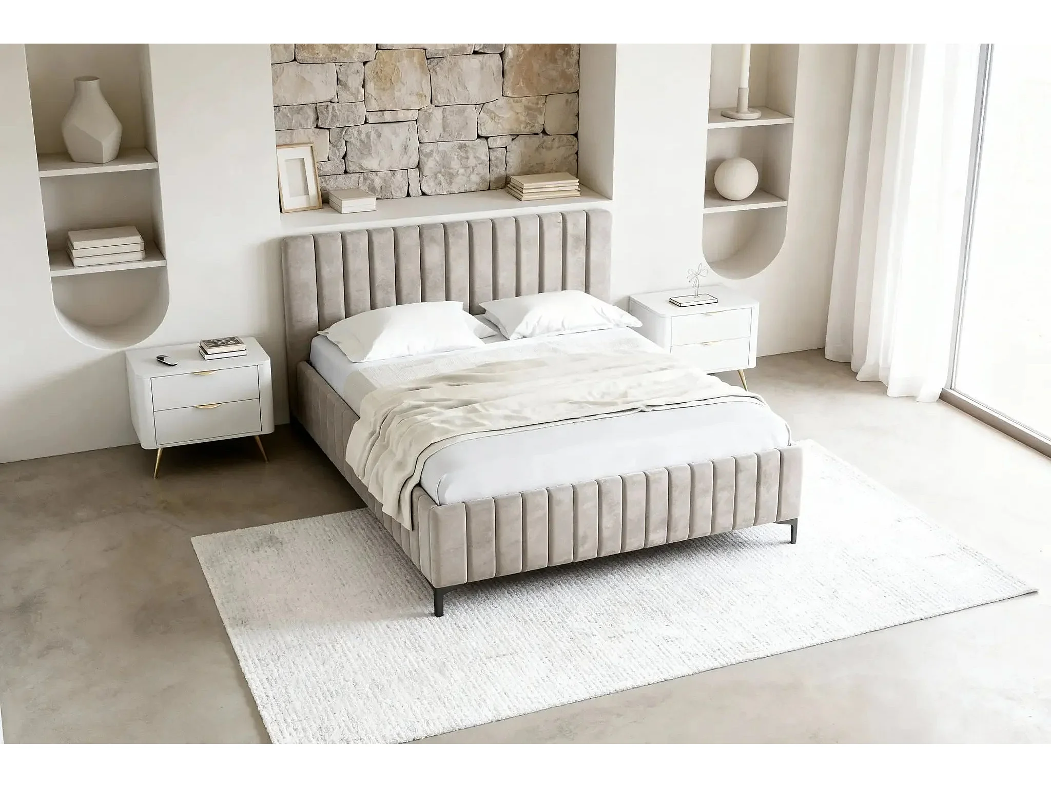EDEN - Lit coffre tissu velours 180x200cm - Beige