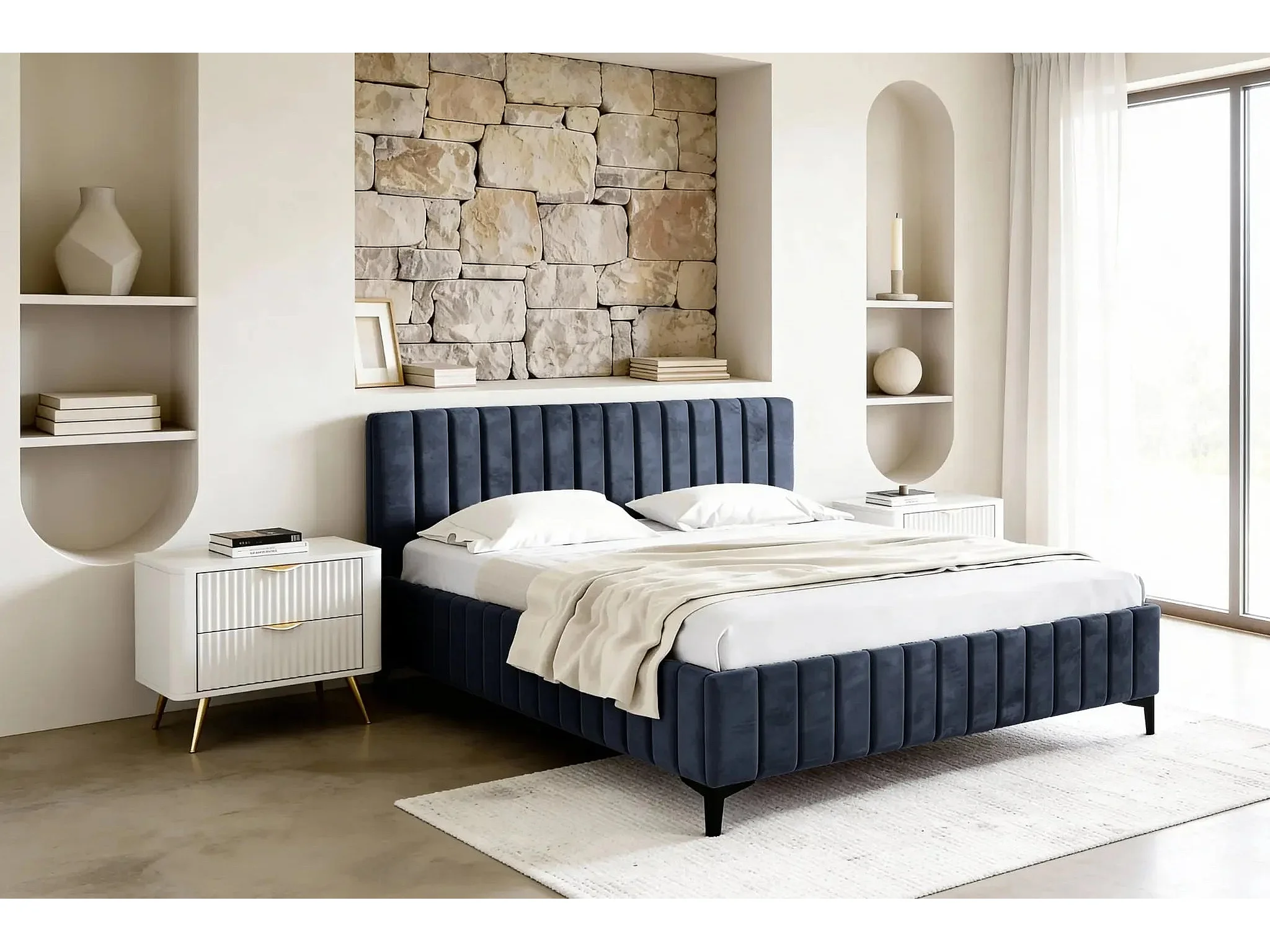 EDEN - Lit coffre tissu velours 180x200cm - Bleu