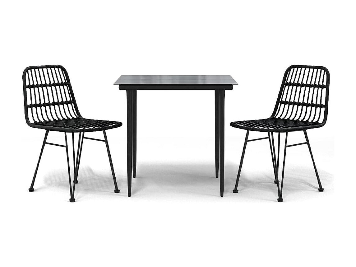 Eden Prairie Ensemble à manger de jardin 3 pcs Noir Résine tressée