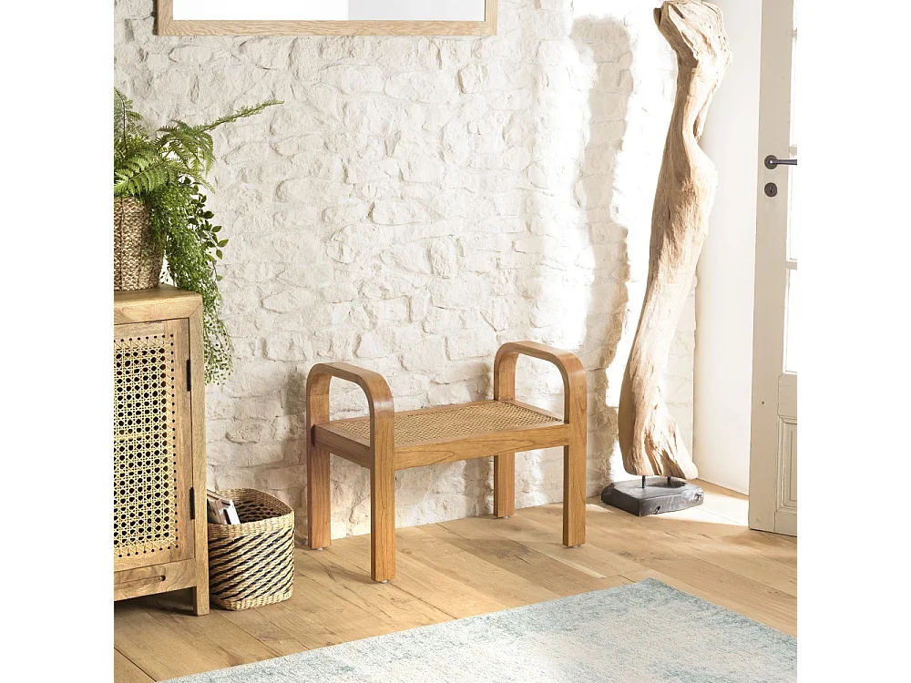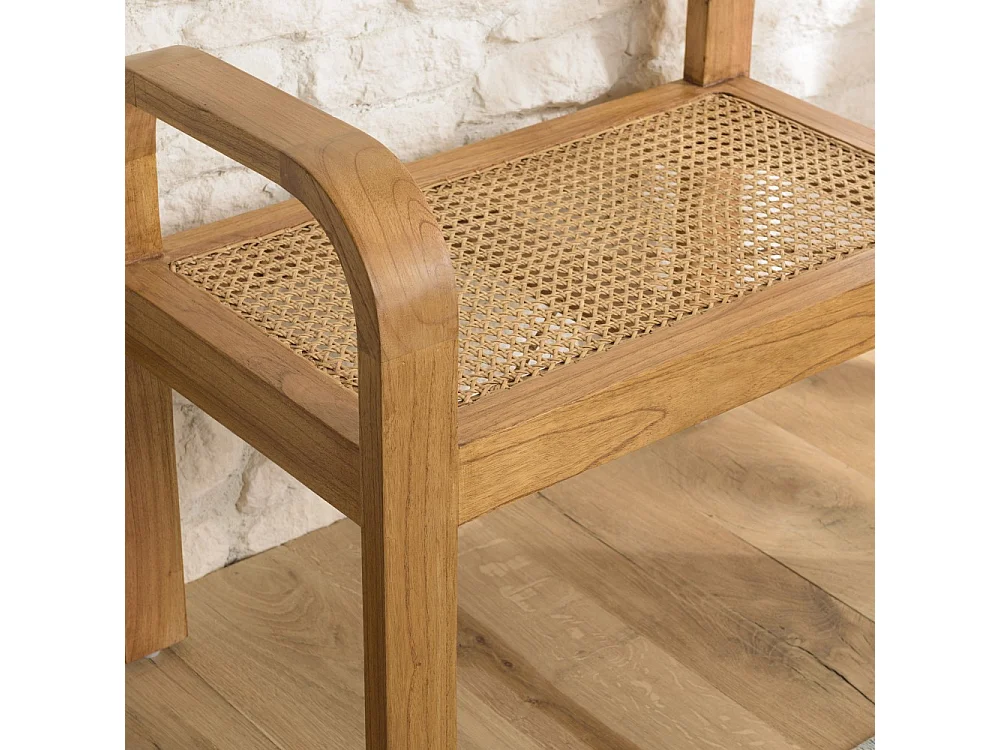 LAUREN - Tabouret 1 place bois de Mindi et rotin naturel