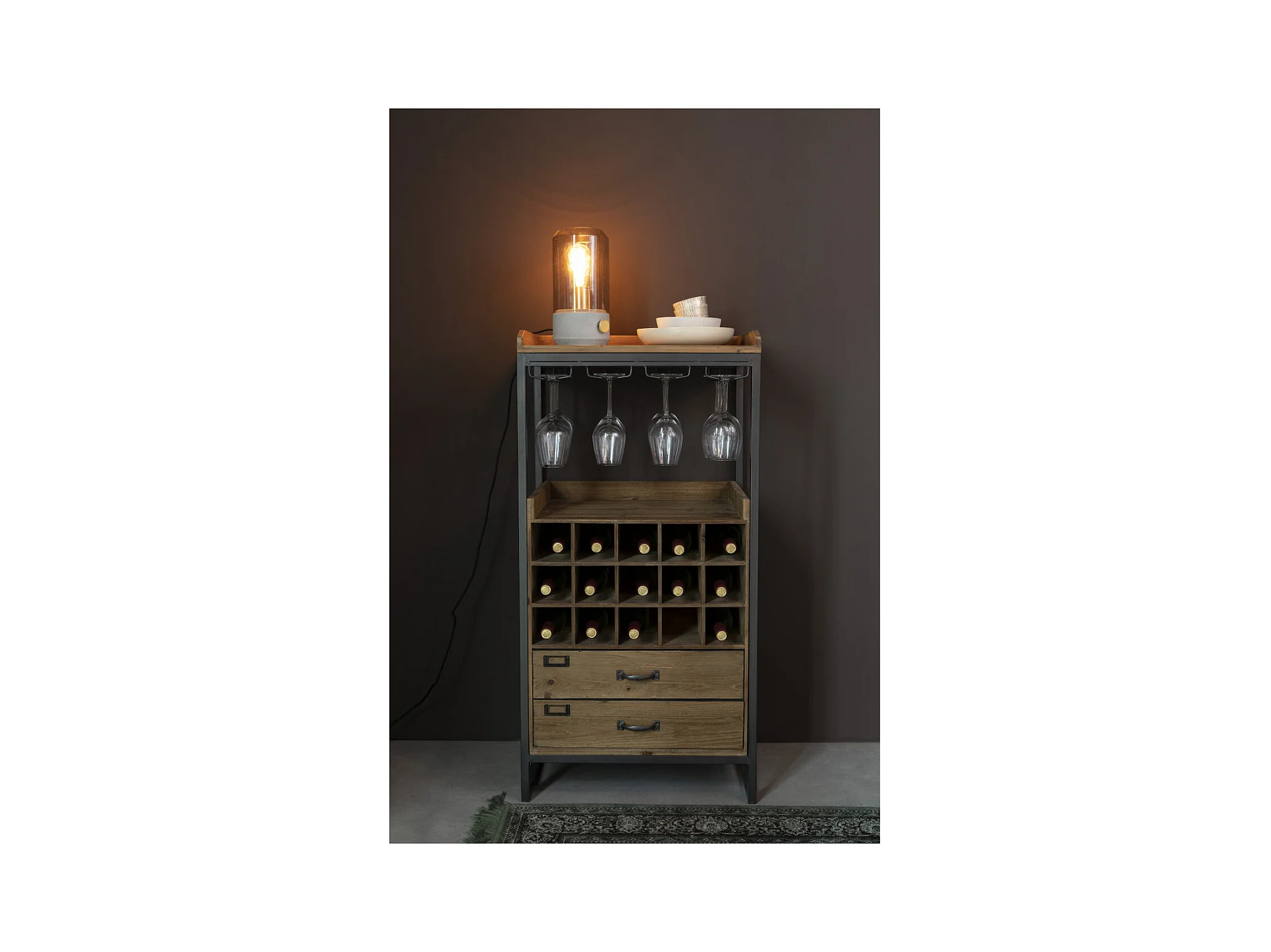 EDGAR - Meuble bar vintage en bois et métal