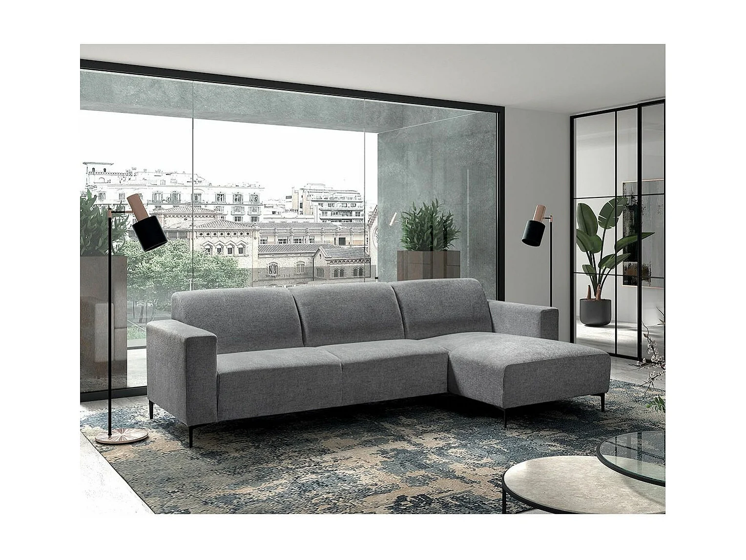 EDOUARD - Canapé Méridienne Droite Tissu Gris Chiné Pieds Métal