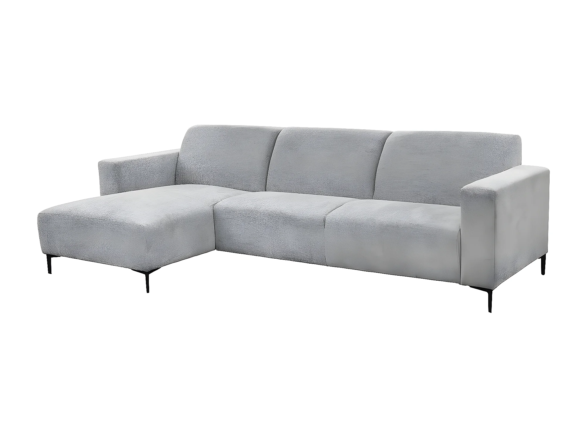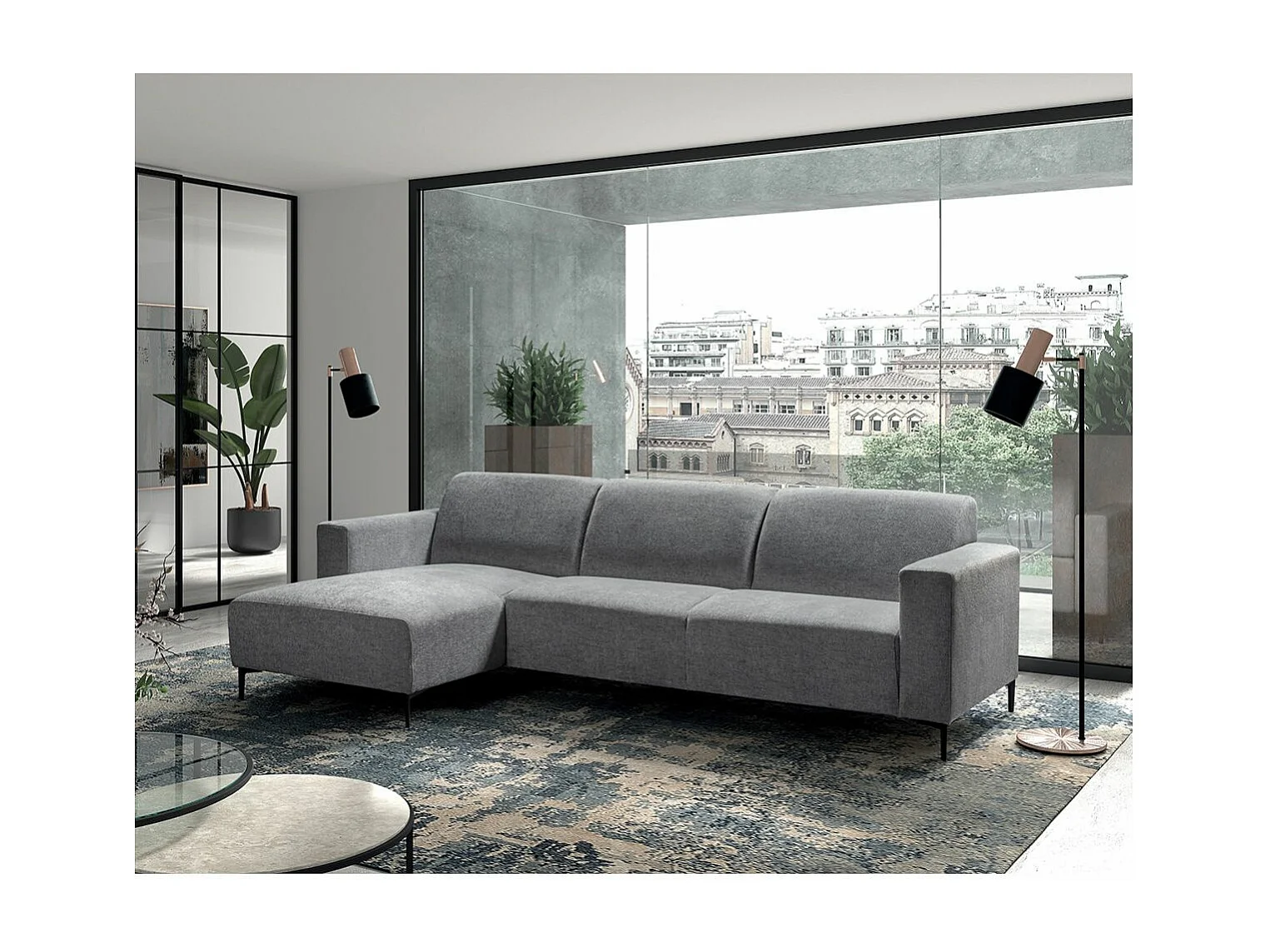 EDOUARD - Canapé Méridienne Gauche Tissu Gris Chiné Pieds Métal