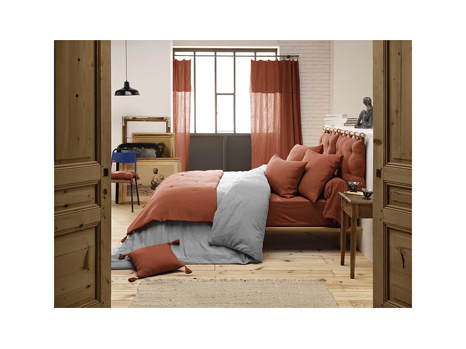 Édredon 90 x 200 cm gaze de coton terracotta avec 4 pompons - PEPA