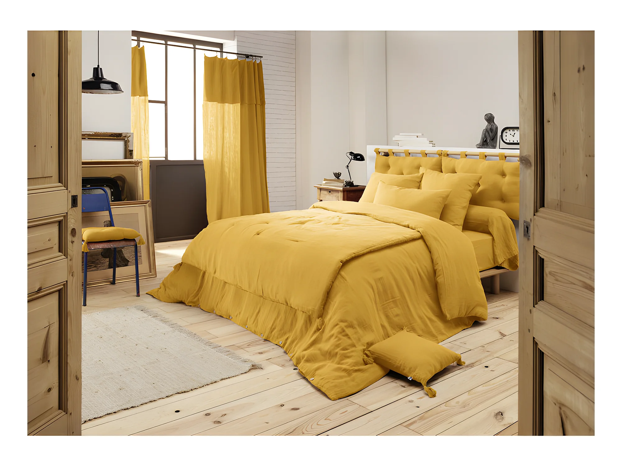 OUREA - Chemin de Lit 90x200cm Capitonné Gaze de Coton Safran