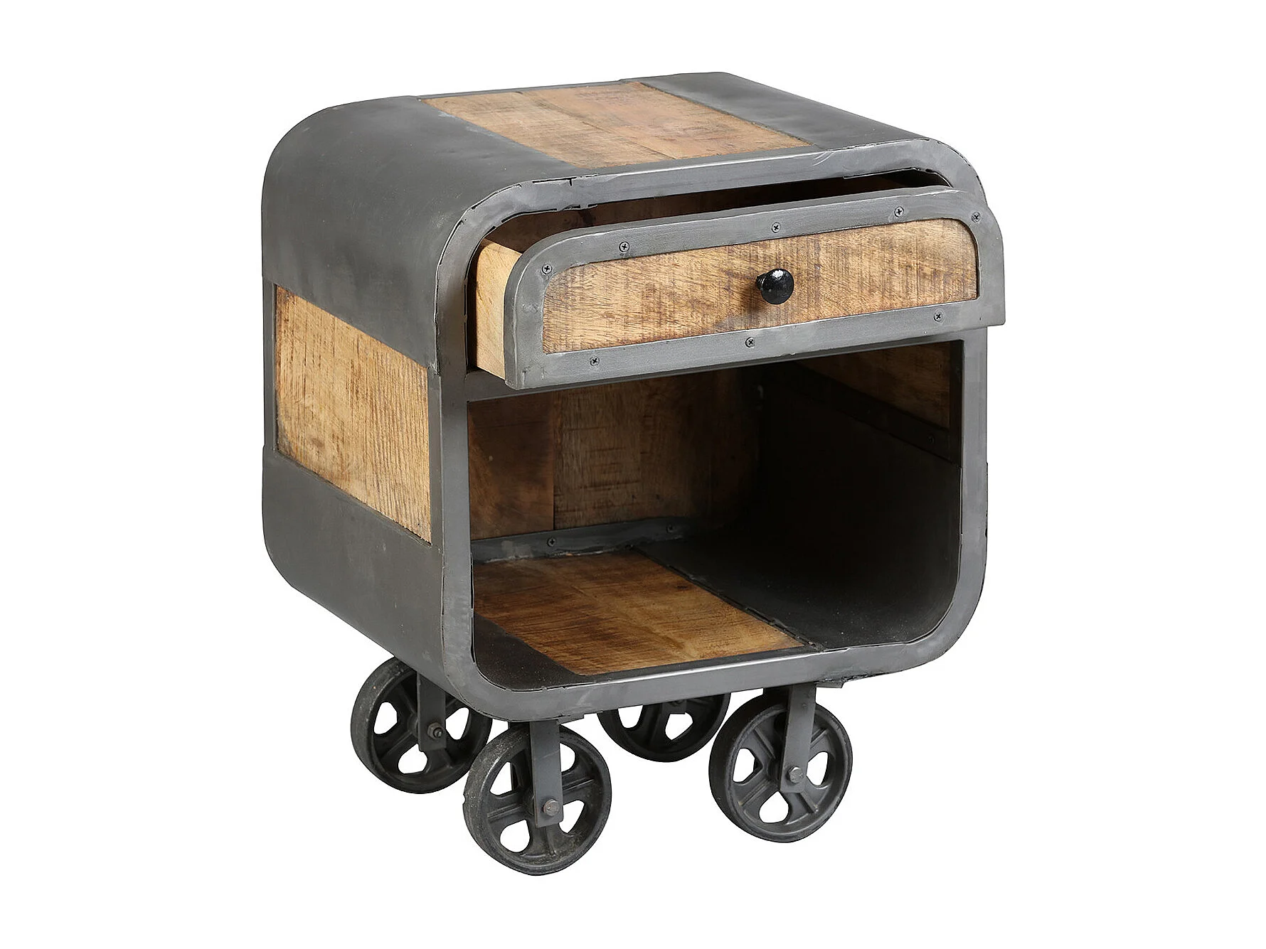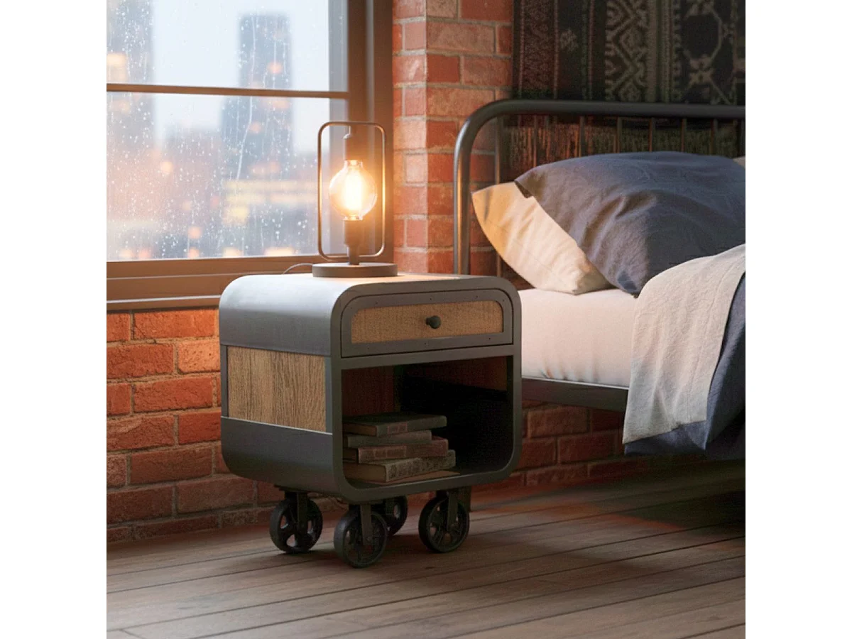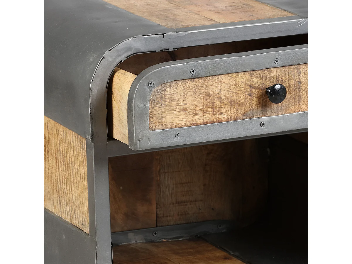 EDWIN - Chevet 1 Tiroir Acier et Bois Massif