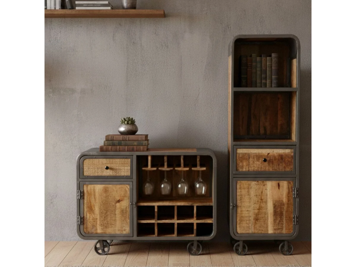 EDWIN - Etagère Multi-Rangements Acier et Bois Massif