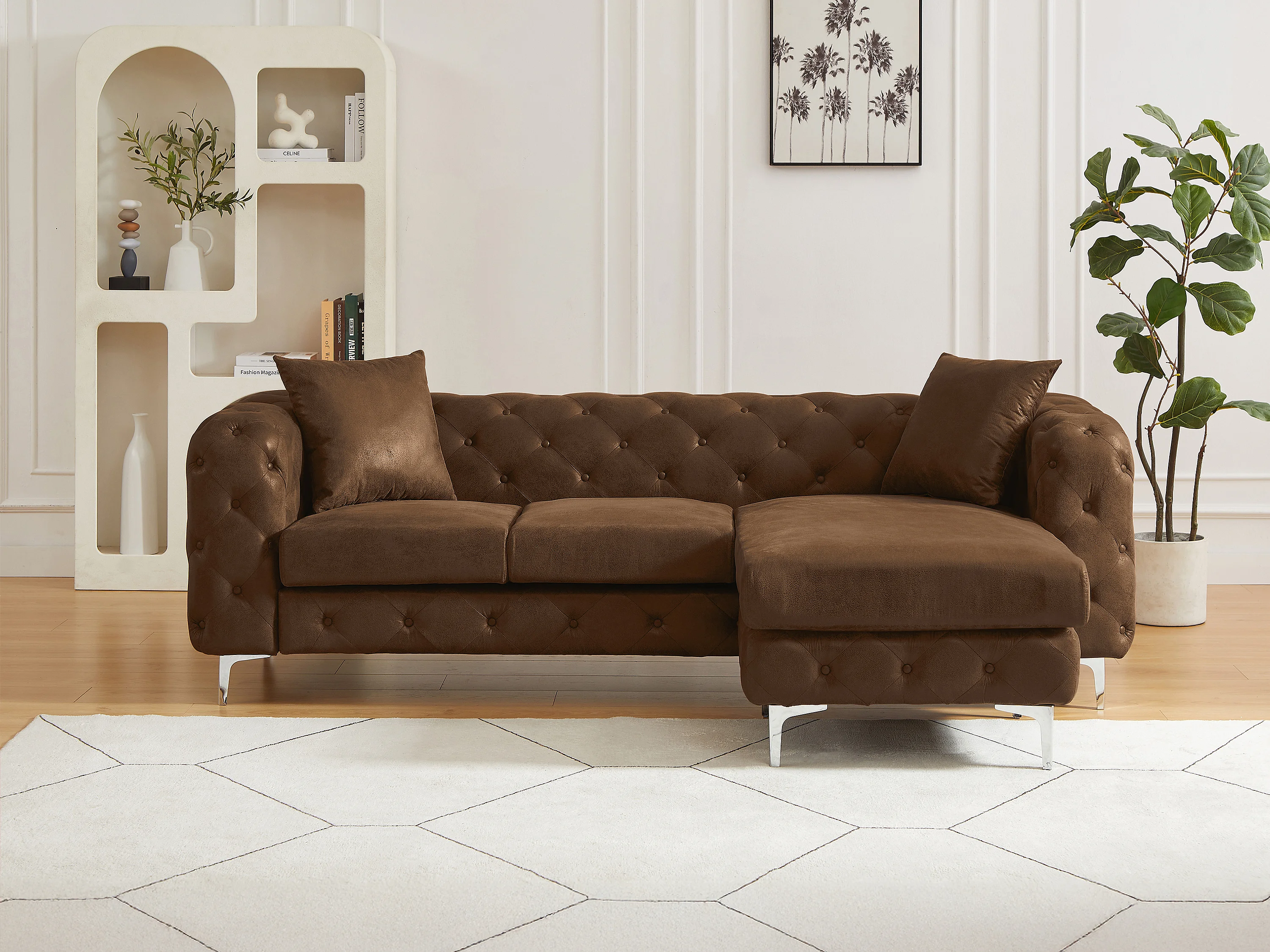 Canapé d'angle réversible chesterfield en microfibre aspect cuir vieilli marron EDWINA