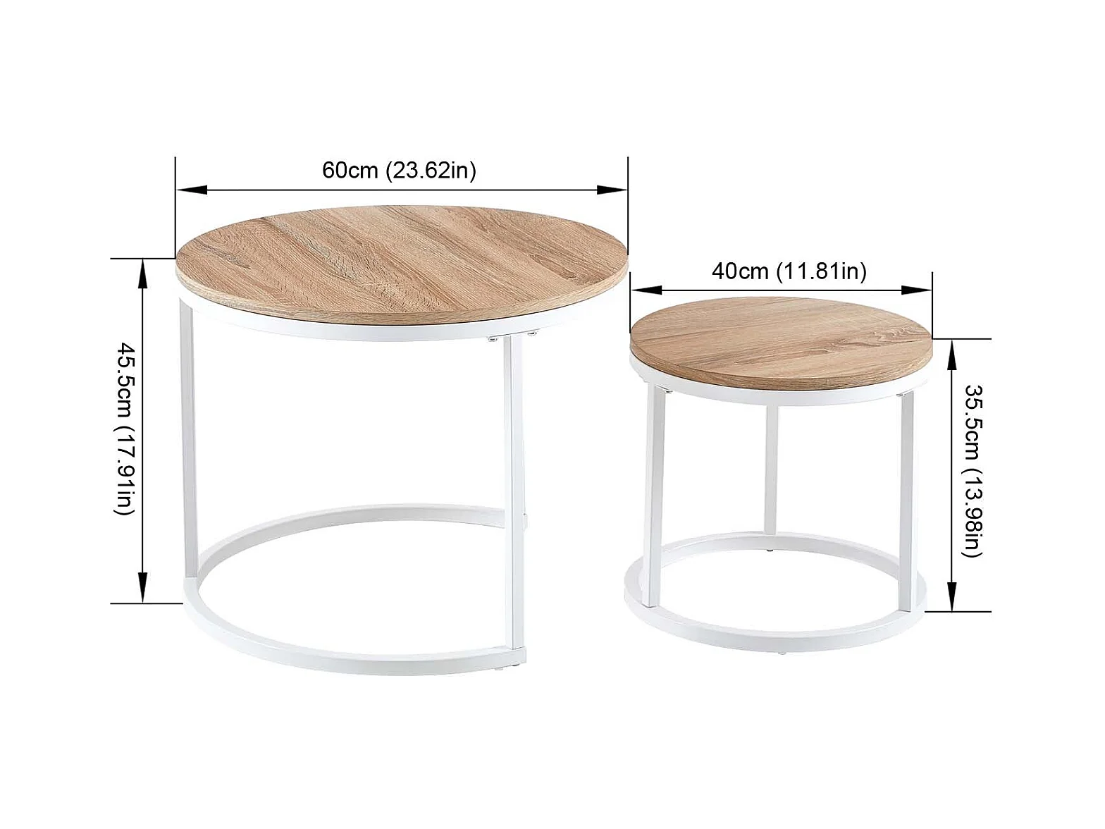 EGGREE Lot de 2 Tables Basses Gigognes Style Scandinave - Tables Basses Rondes pour Salon - 60 x 45 cm et 40 x 35 cm - Couleur Chêne