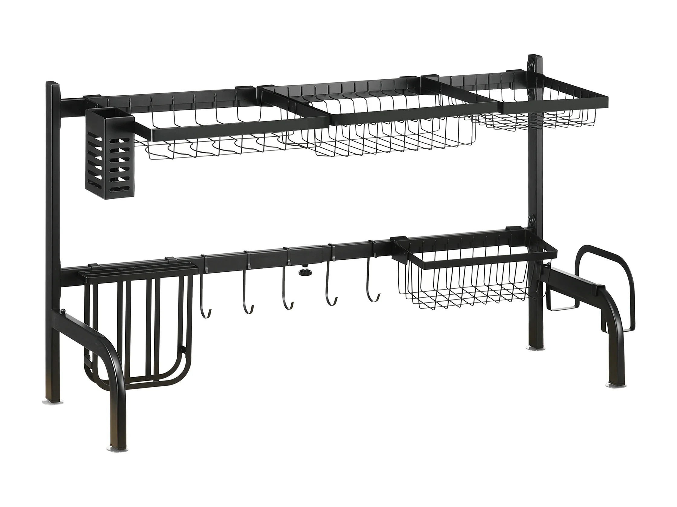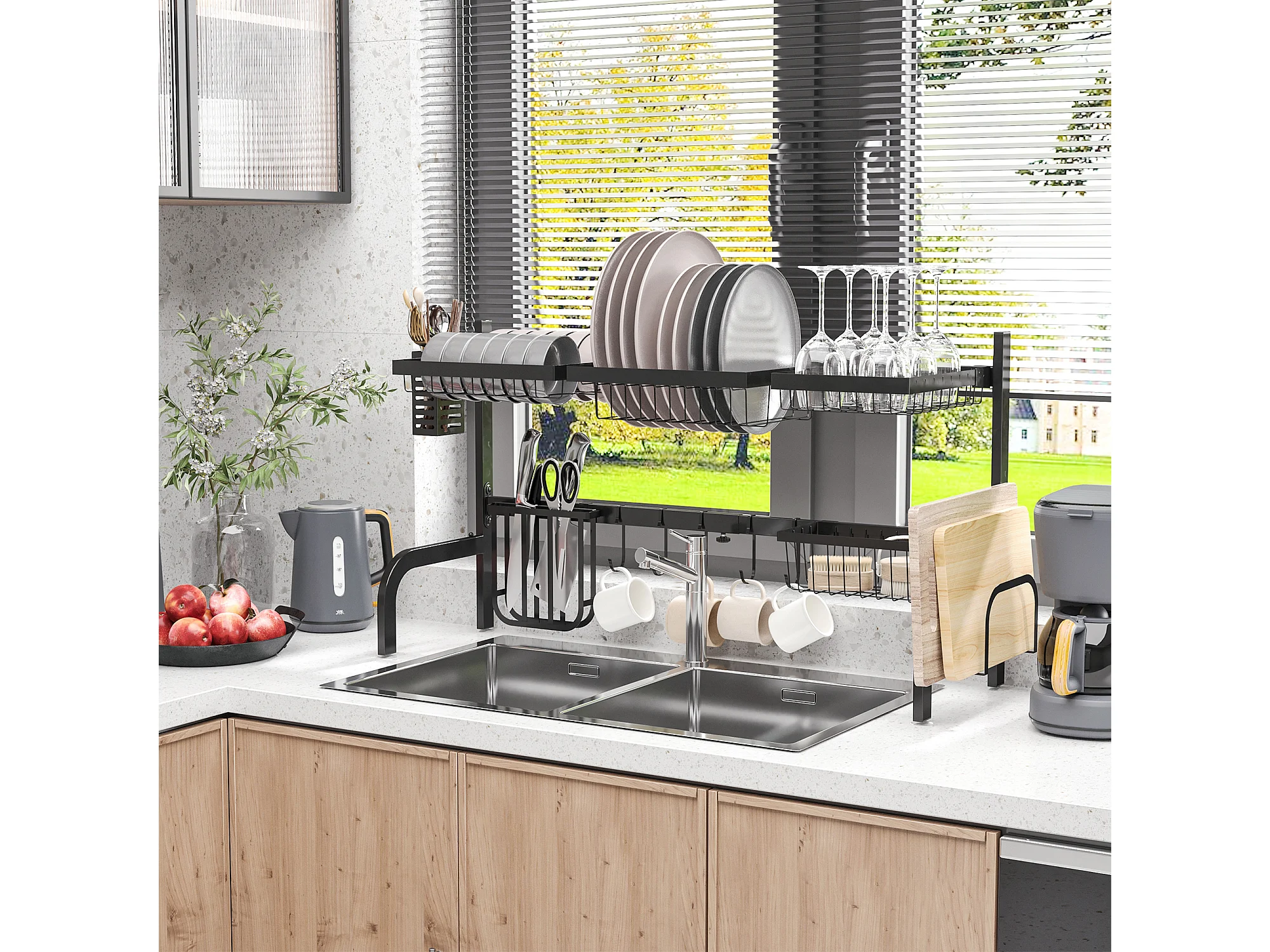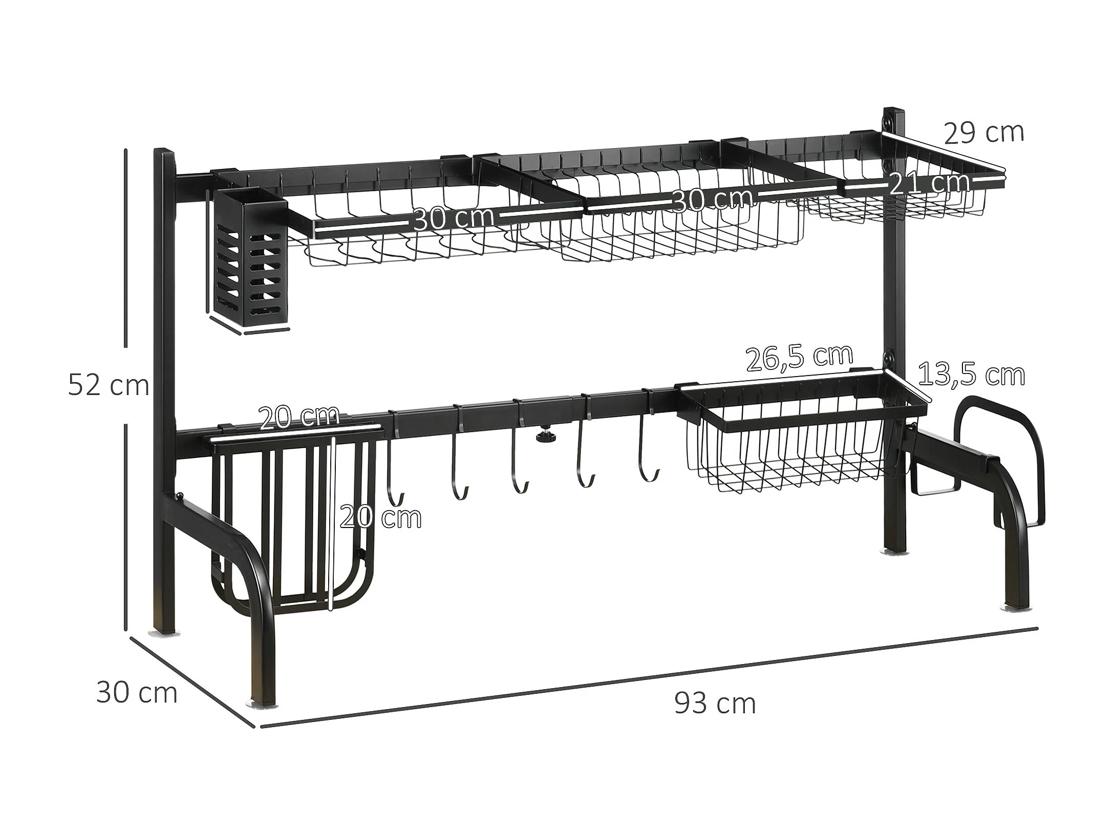 Égouttoir à vaiselle réglable - organiseur d'évier - 8 espaces de séchage - pieds ventouses - acier époxy noir