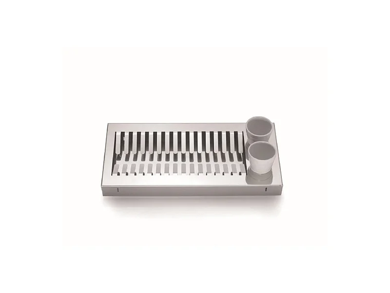 Égouttoir à vaisselle en Acier Inoxydable et 2 porte-couverts en porcelaine blanche. OBI