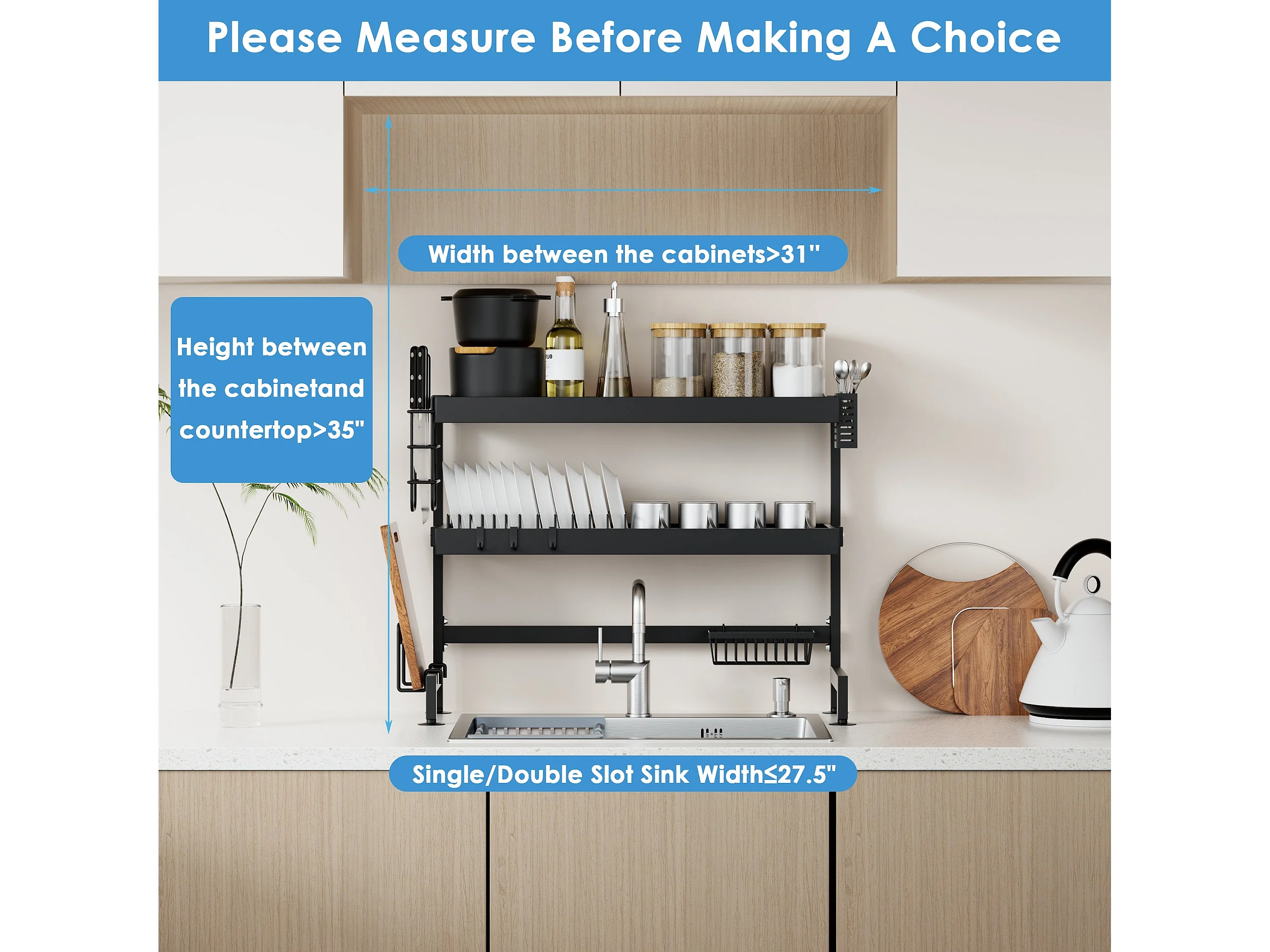 Égouttoir à vaiselle - organiseur d'évier - 9 espaces de séchage - acier noir
