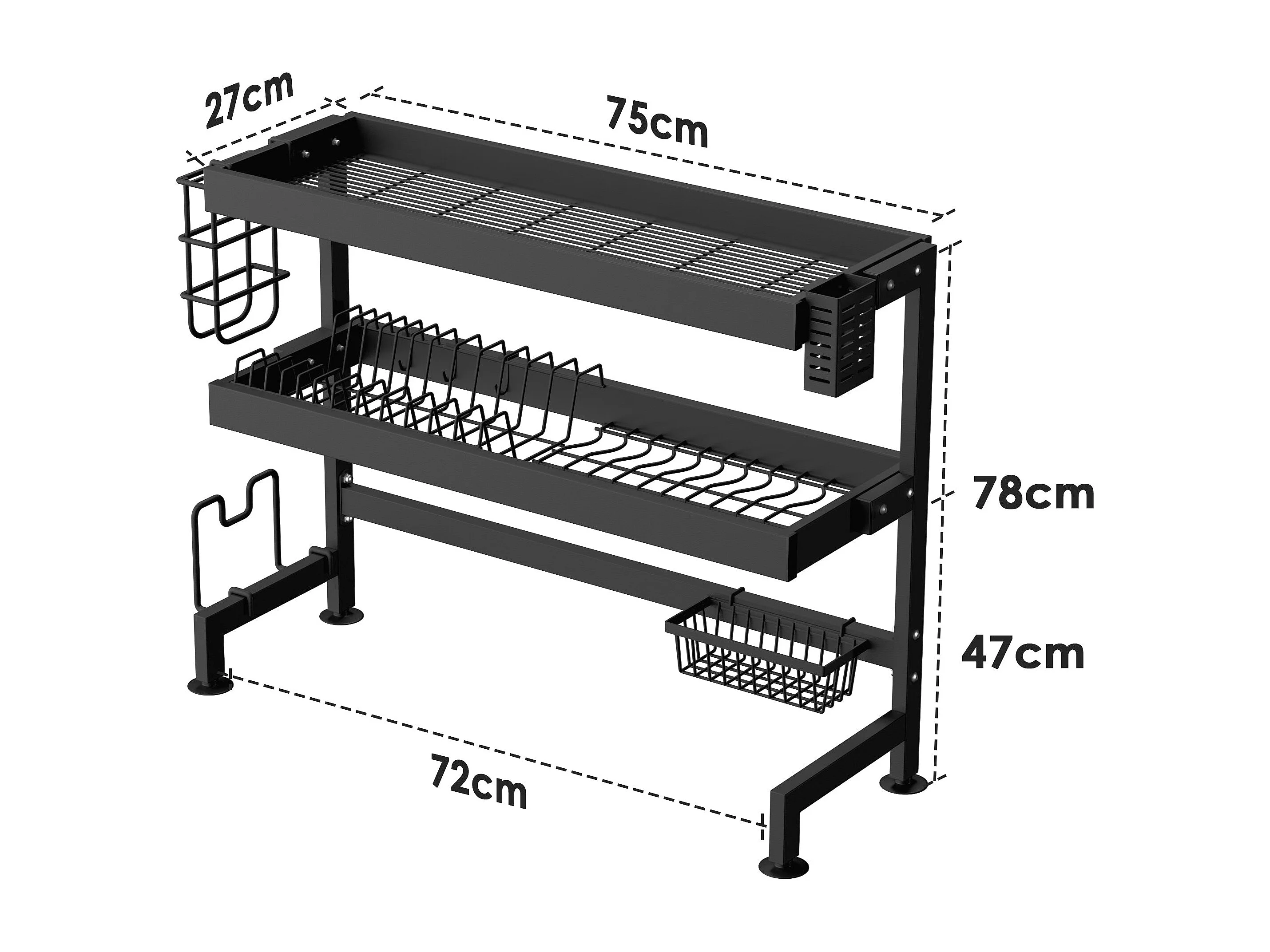 Égouttoir à Vaisselle, 3 Niveaux, avec porte, support de Planche à découper, bac d'égouttage, 85x30x80cm