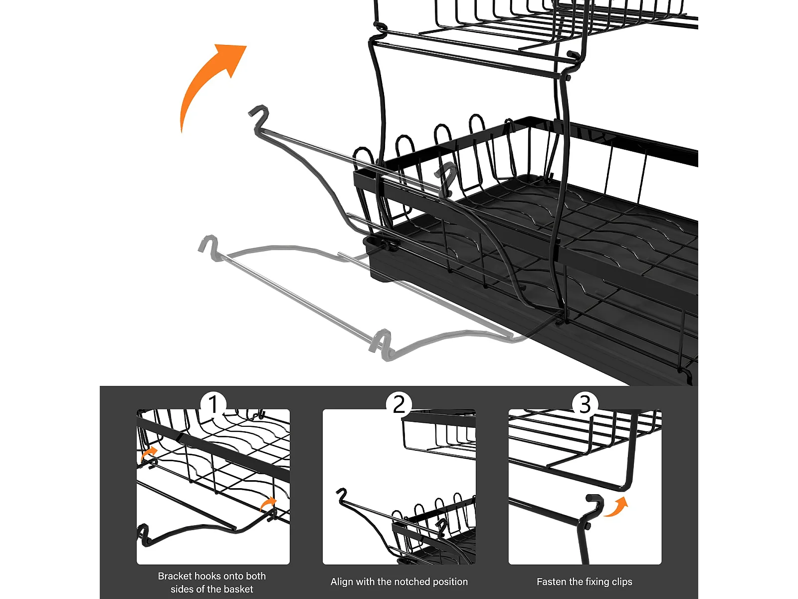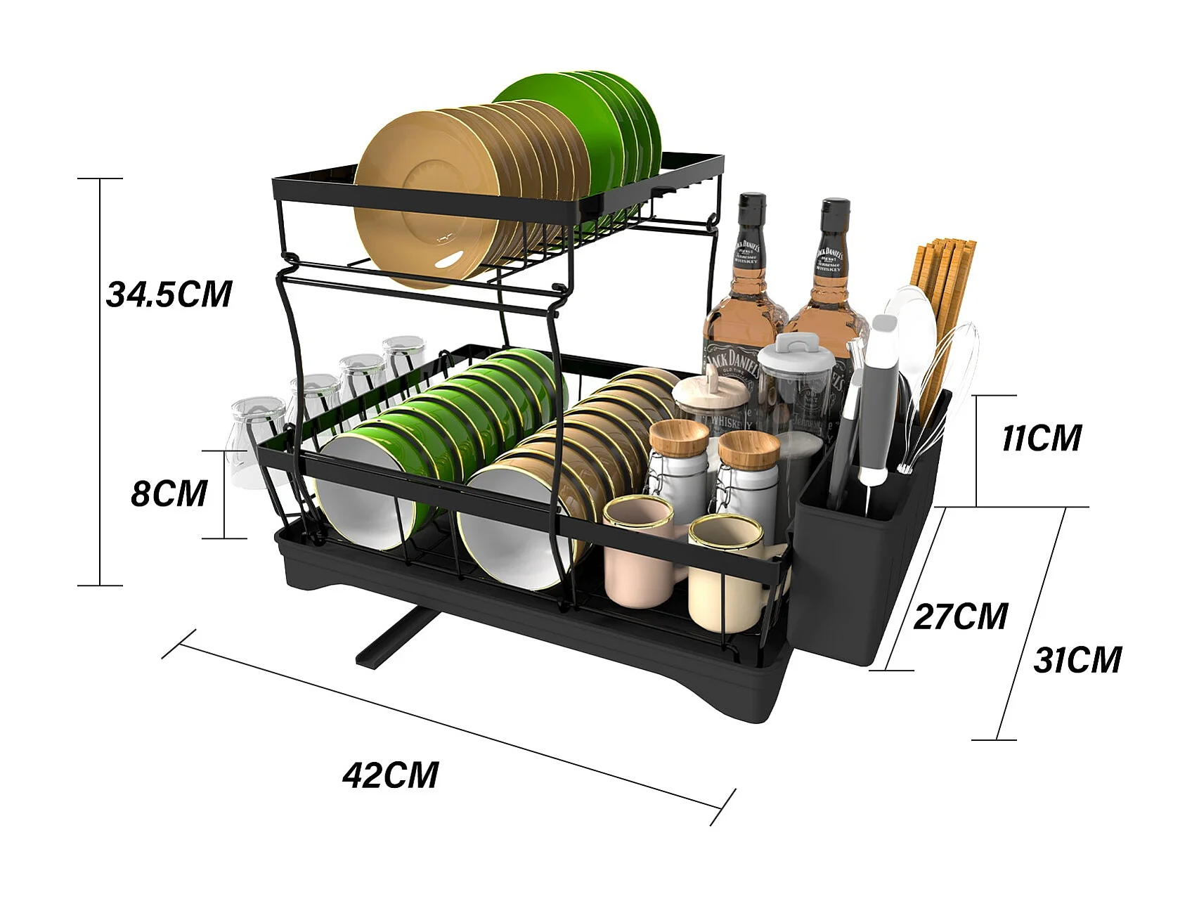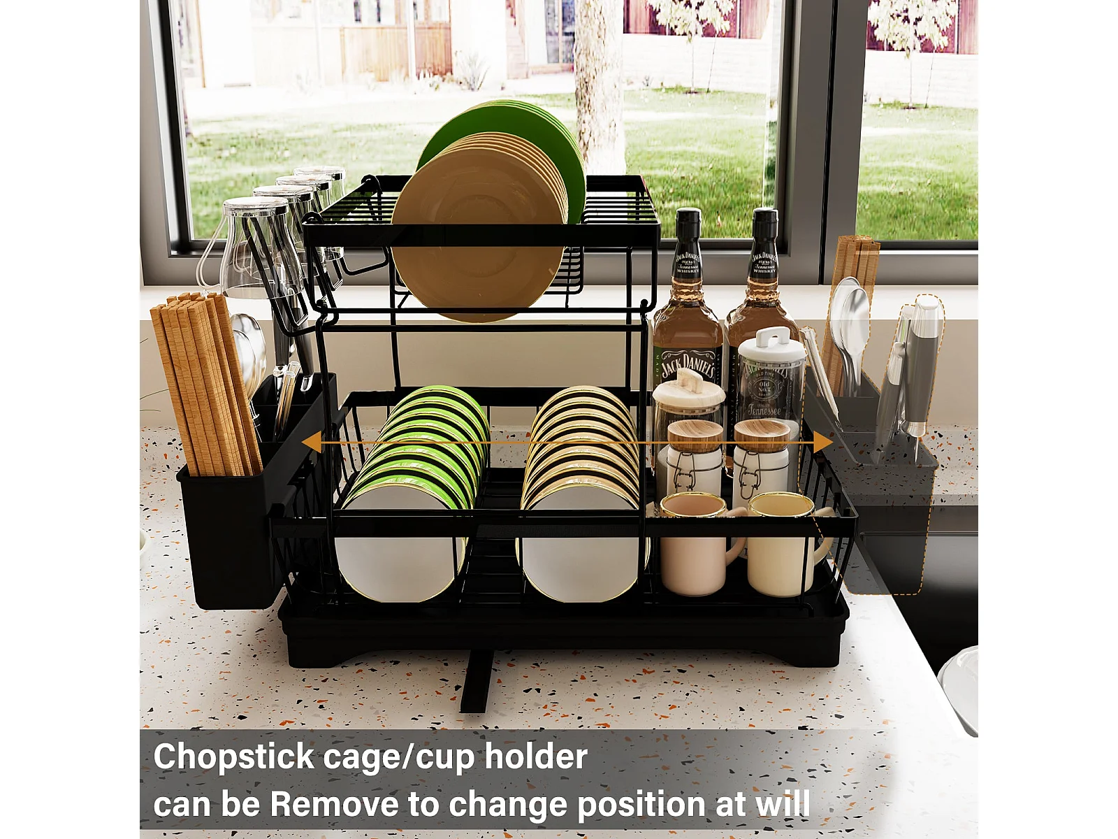 Égouttoirs à Vaisselle à 2 Niveaux Noir,Égoutoire Vaisselle Cuisine avec bac Récupération Amovible et Porte-Couverts.