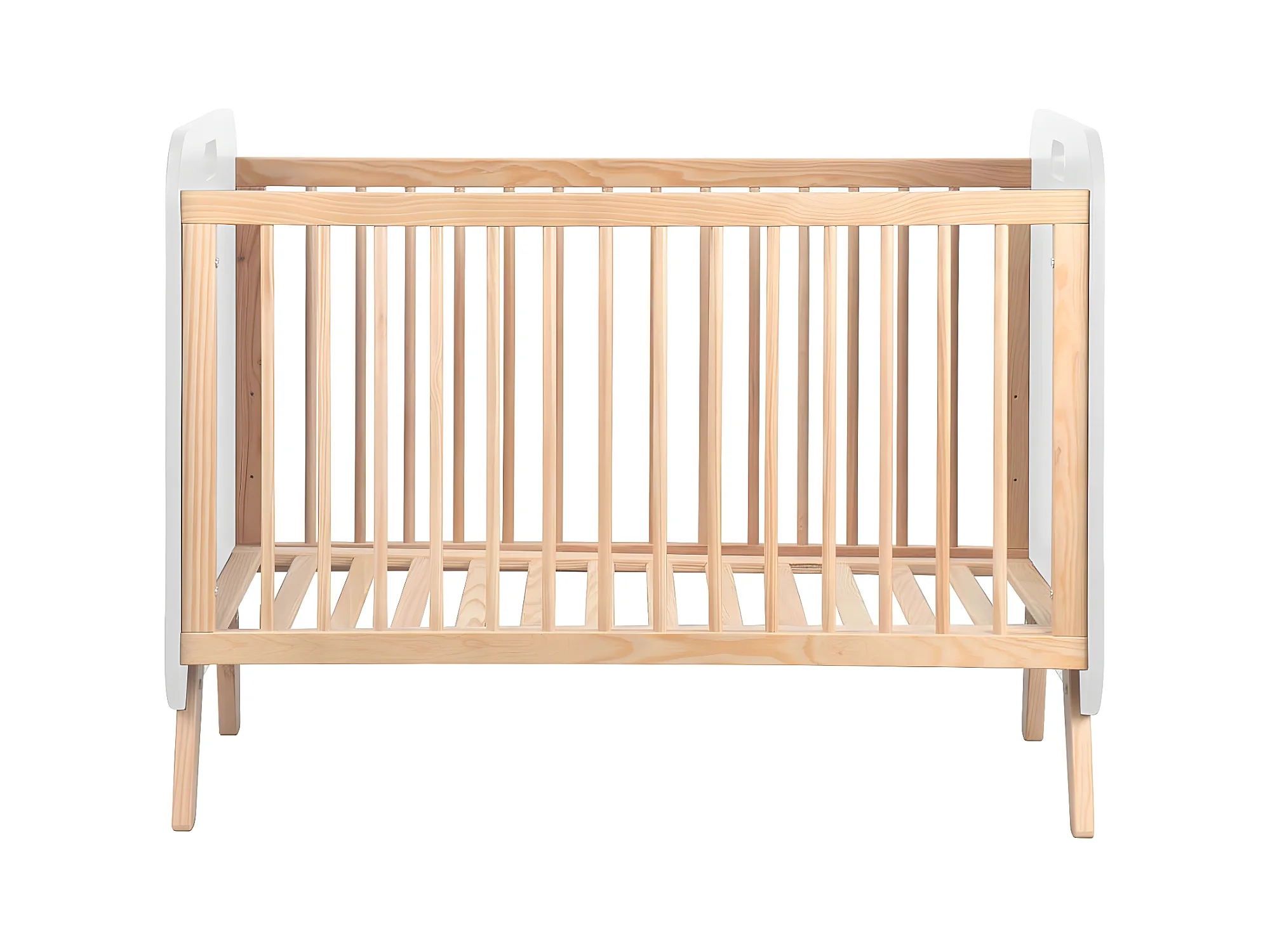 EIFFA - Lit Bébé 90x120cm en MDF et Pin Massif Coloris Blanc et Naturel