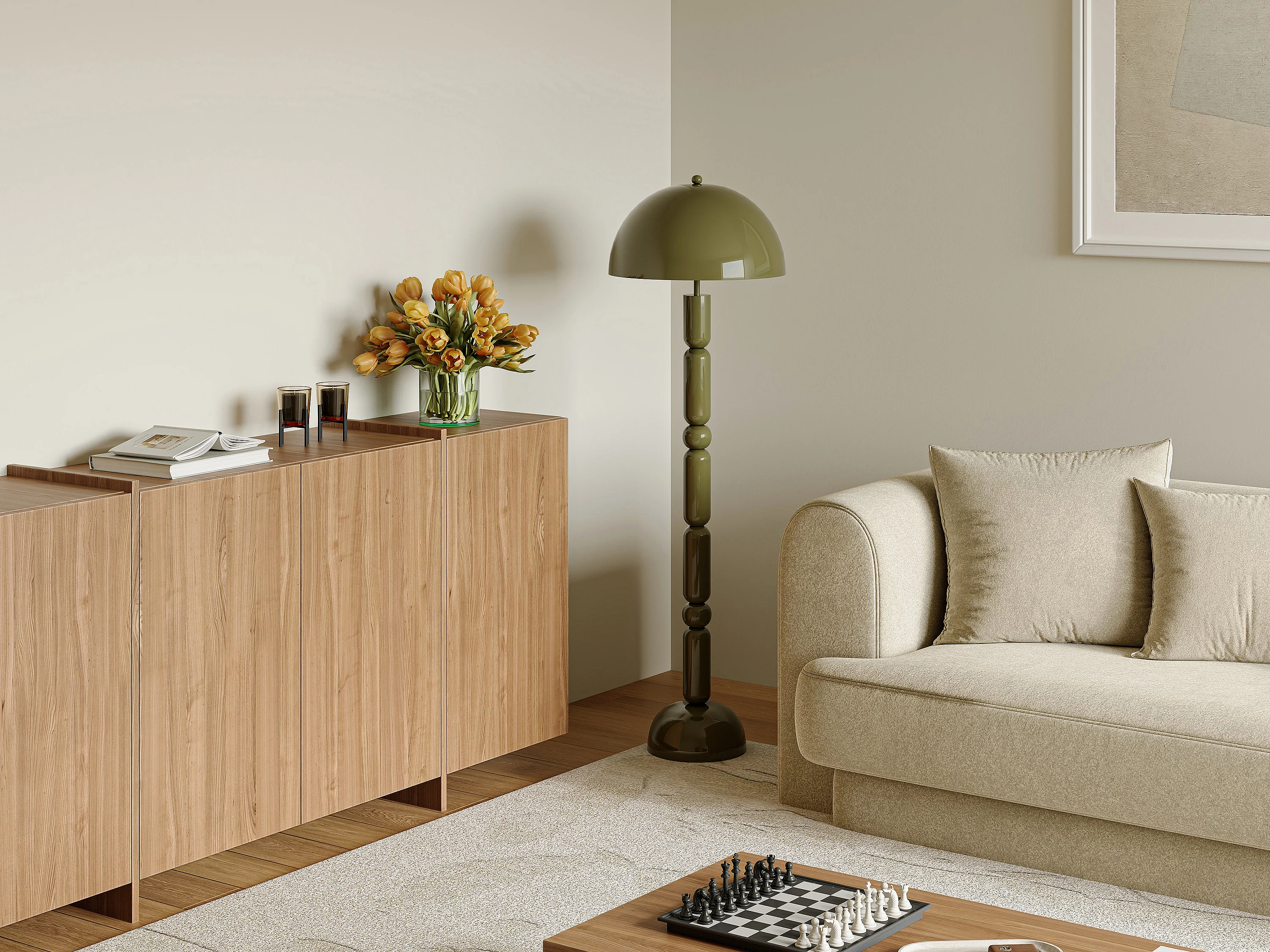 Lampadaire champignon en métal - D. 45 x H. 147 cm - Kaki brillant - ELDON