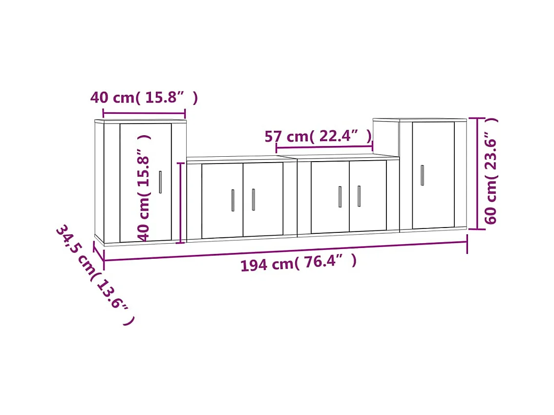 Eldor Ensemble de meubles TV 4 pcs Blanc Bois d'ingénierie