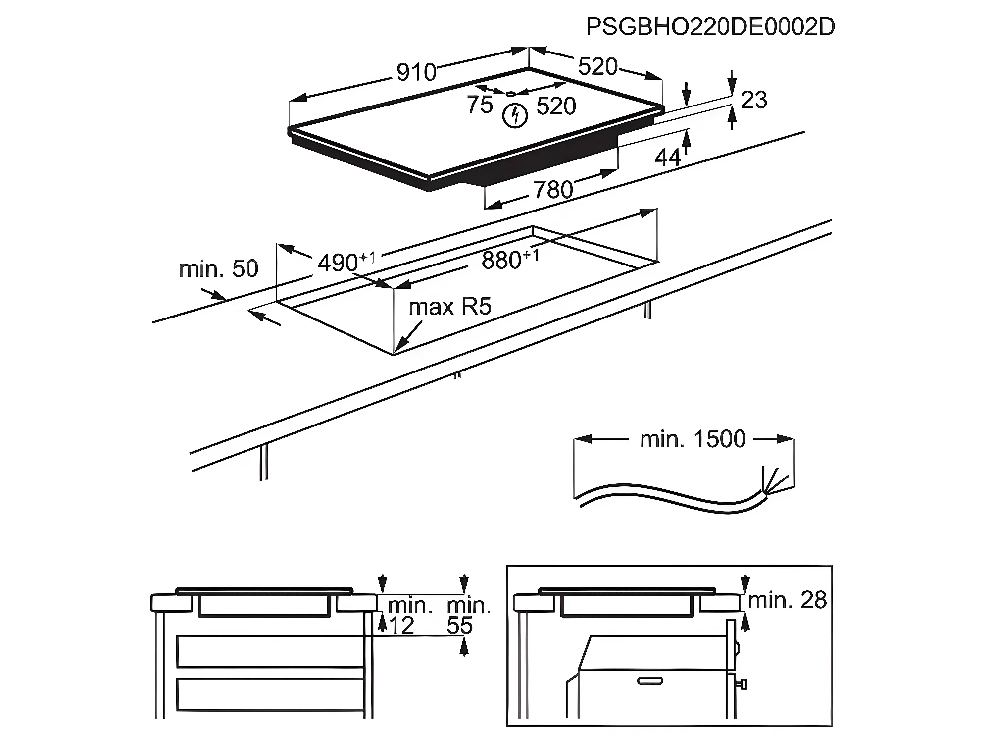 Electrolux Table de cuisson induction 90cm 5 feux 7350w noir - EIV95550