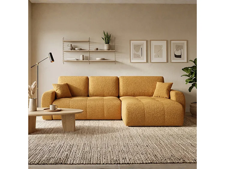 Élégant canapé d'angle convertible droit IVO XL 280x142 cm, en tissu CENTAUR 8 miel