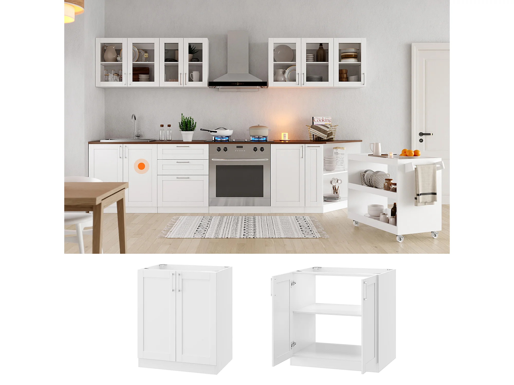 Élément Bas de Cuisine Meuble de Cuisine Modulaire avec Étagères, 60 x 60 x 81.5 cm, Blanc