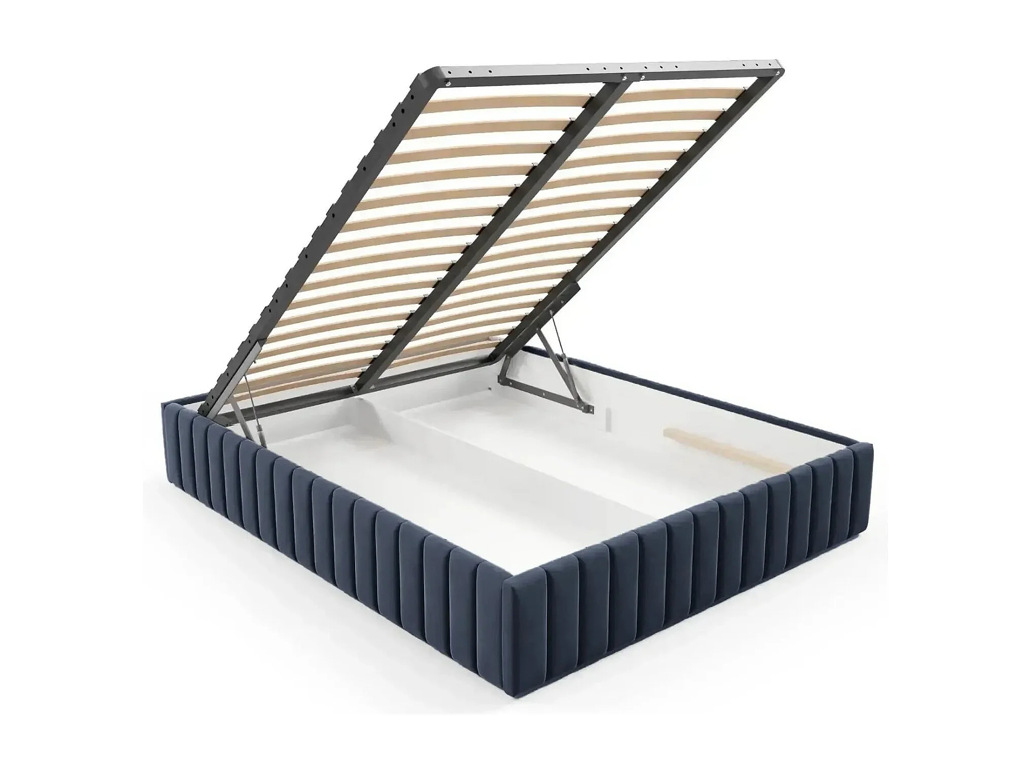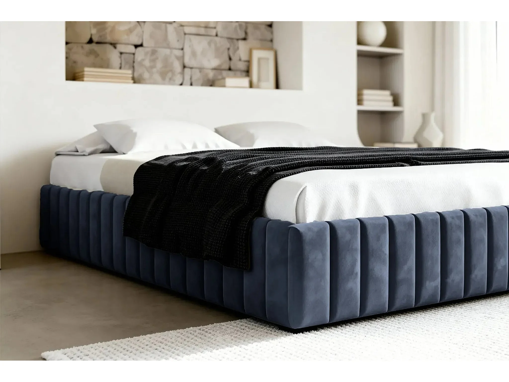ELENA - Lit coffre tissu velours 160x200cm - Bleu