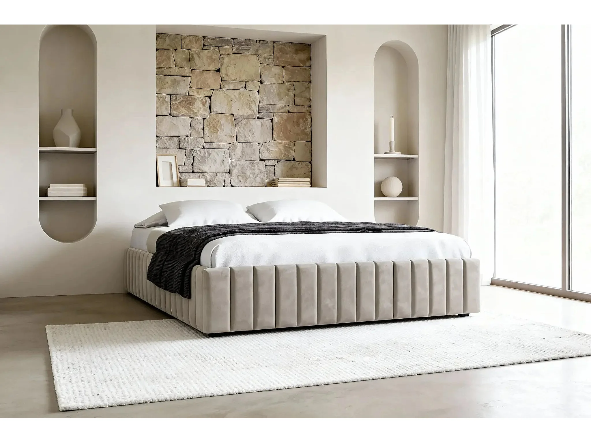 ELENA - Lit coffre tissu velours 180x200cm - Beige