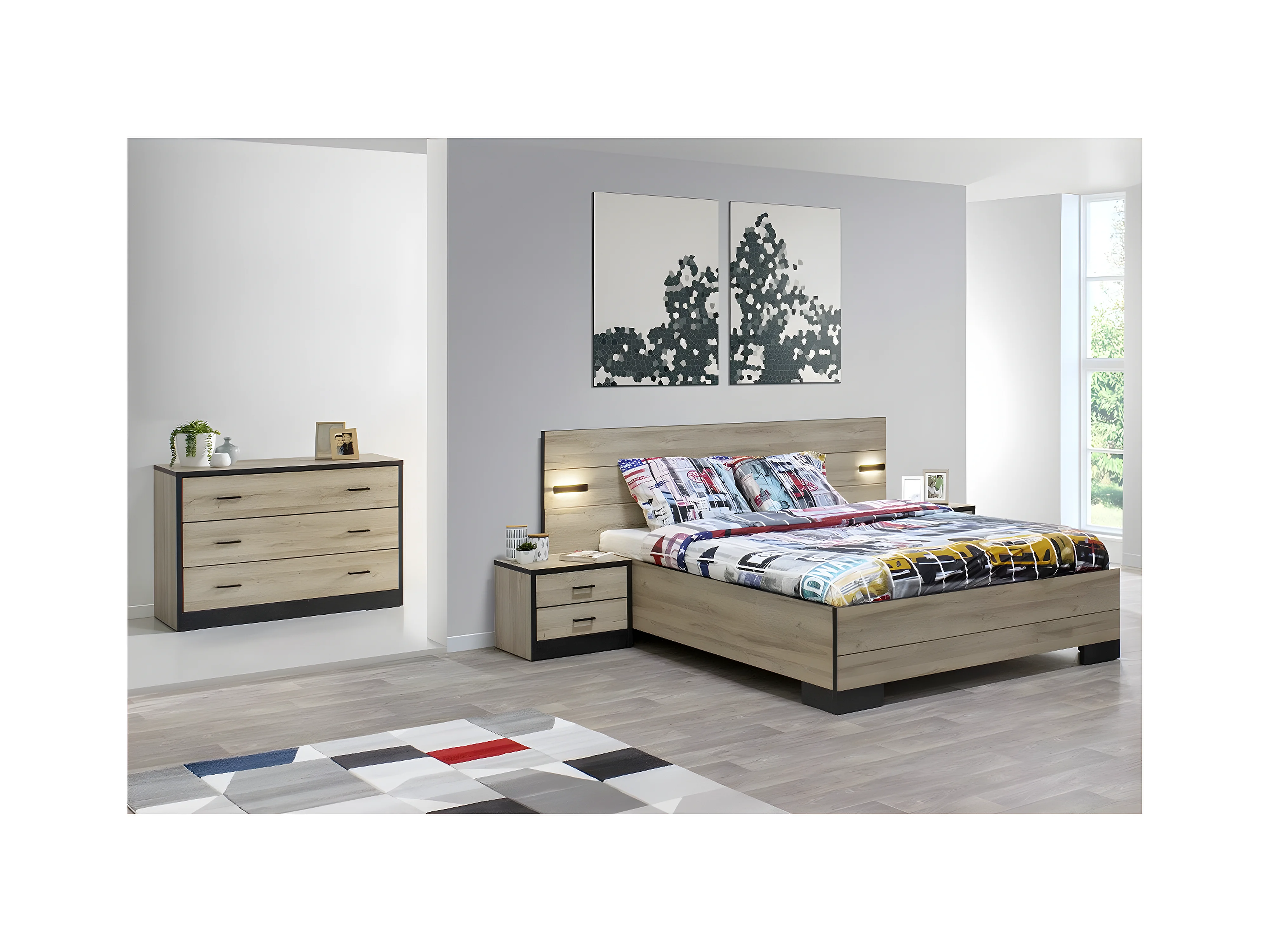 ELEOS - Chambre 140x190cm avec Commode 3 Tiroirs