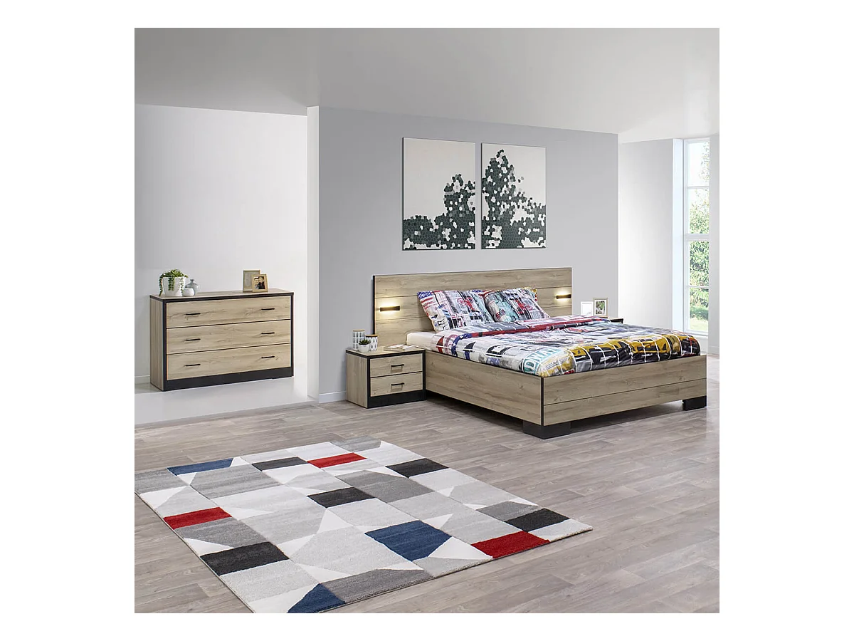 ELEOS - Commode 3 Tiroirs Imitation Chêne