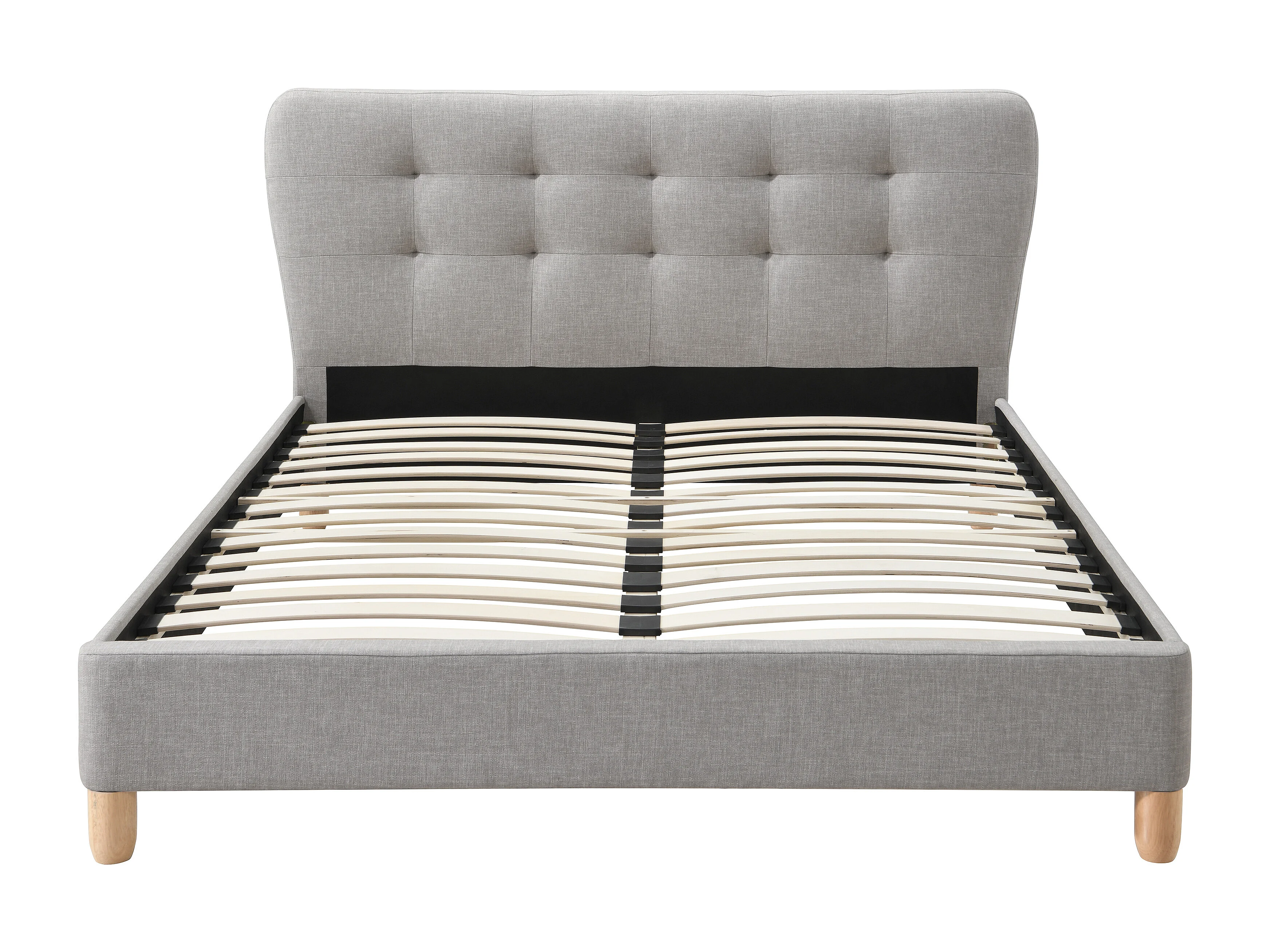 Lit 140 x 190 cm avec tête de lit capitonnée - Tissu - Gris + Matelas - ELIDE