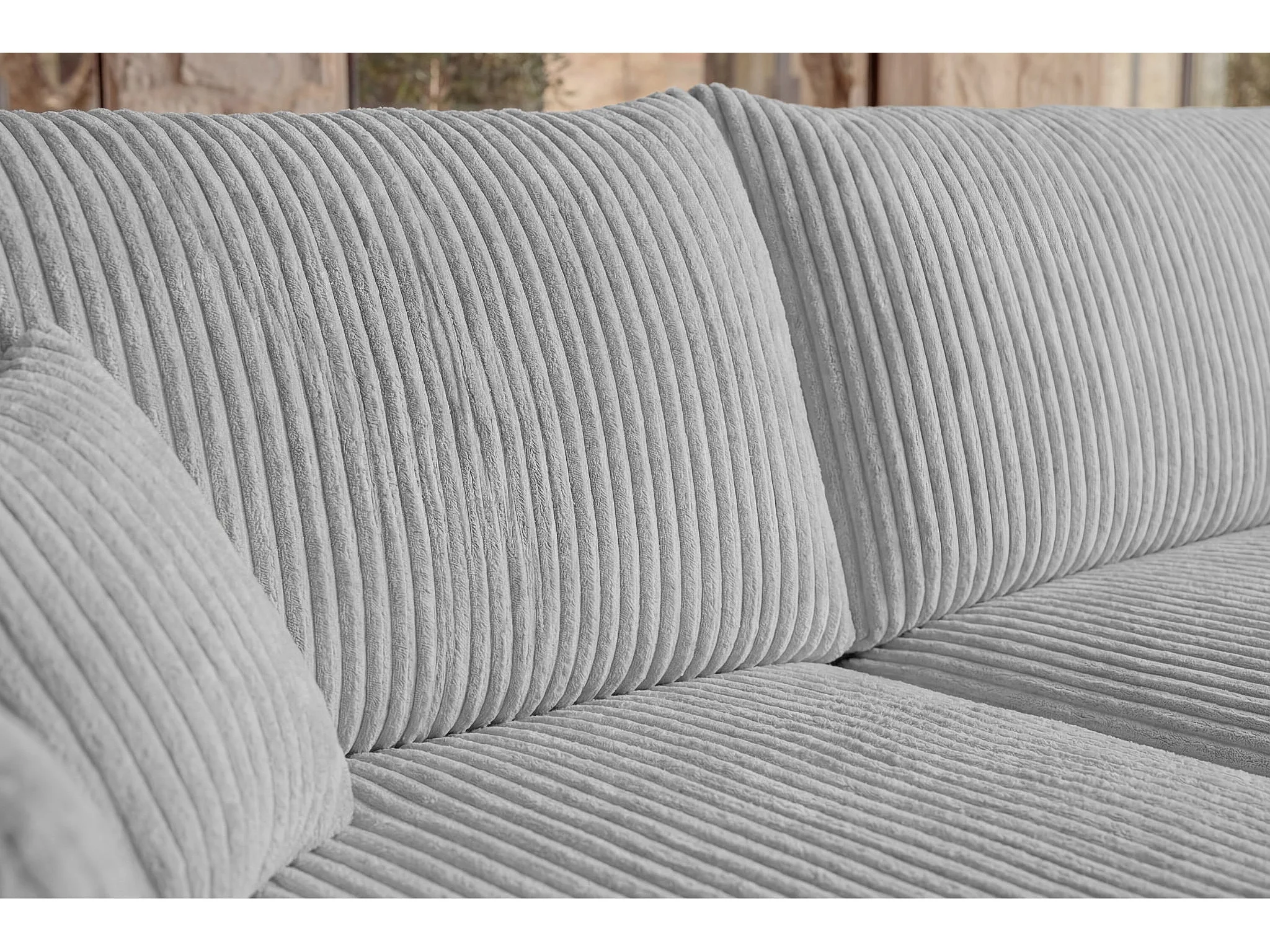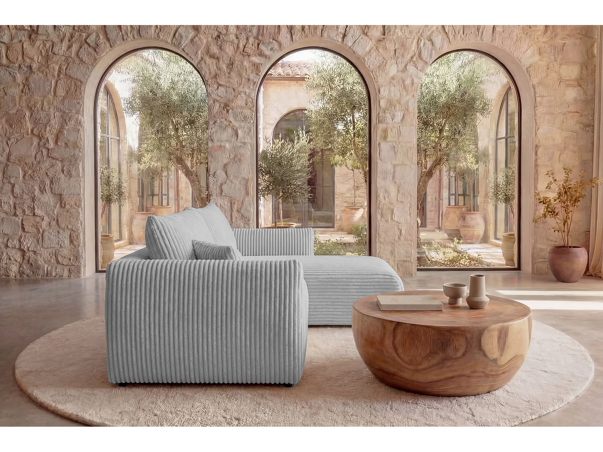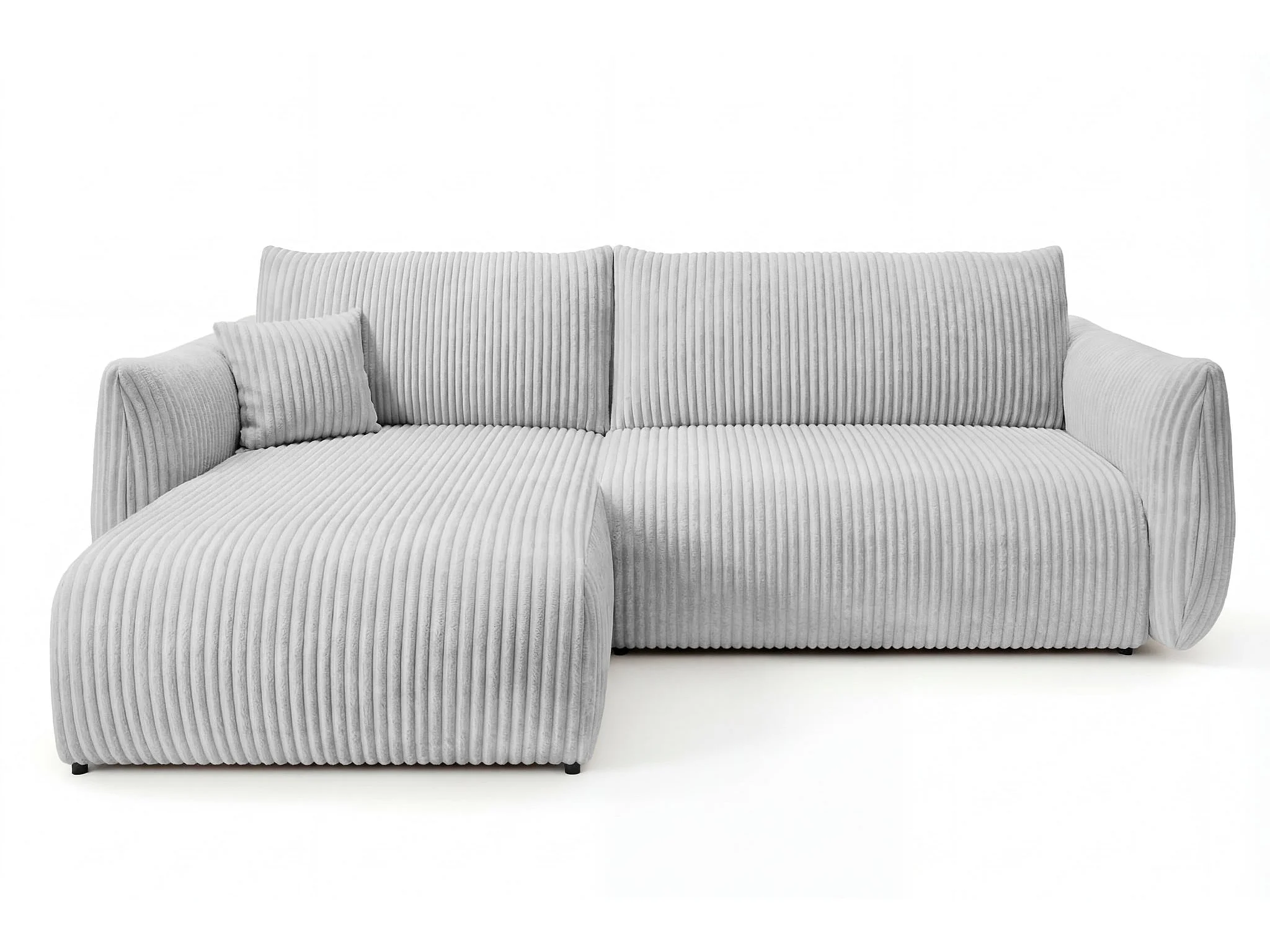 ELIO - Canapé d'angle convertible gros velours côtelé - Gris clair