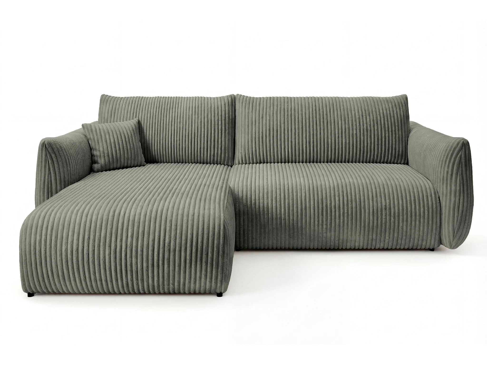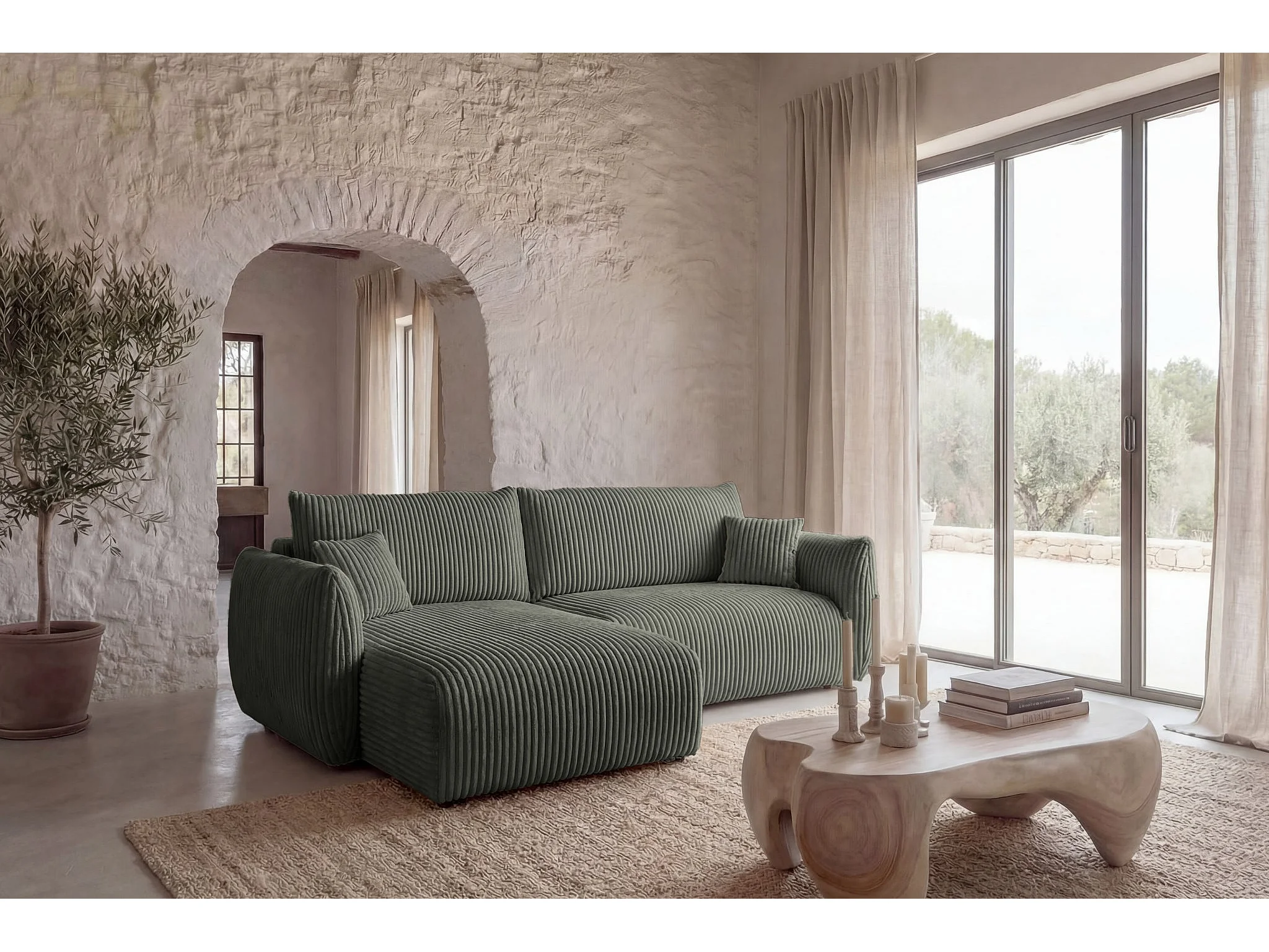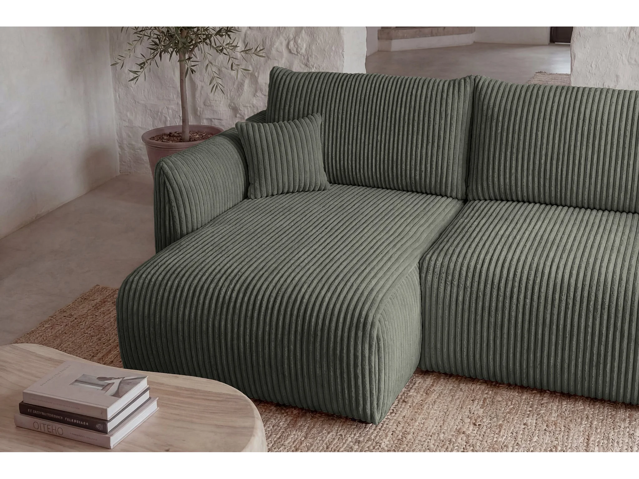 ELIO - Canapé d'angle convertible gros velours côtelé 4 places - Vert