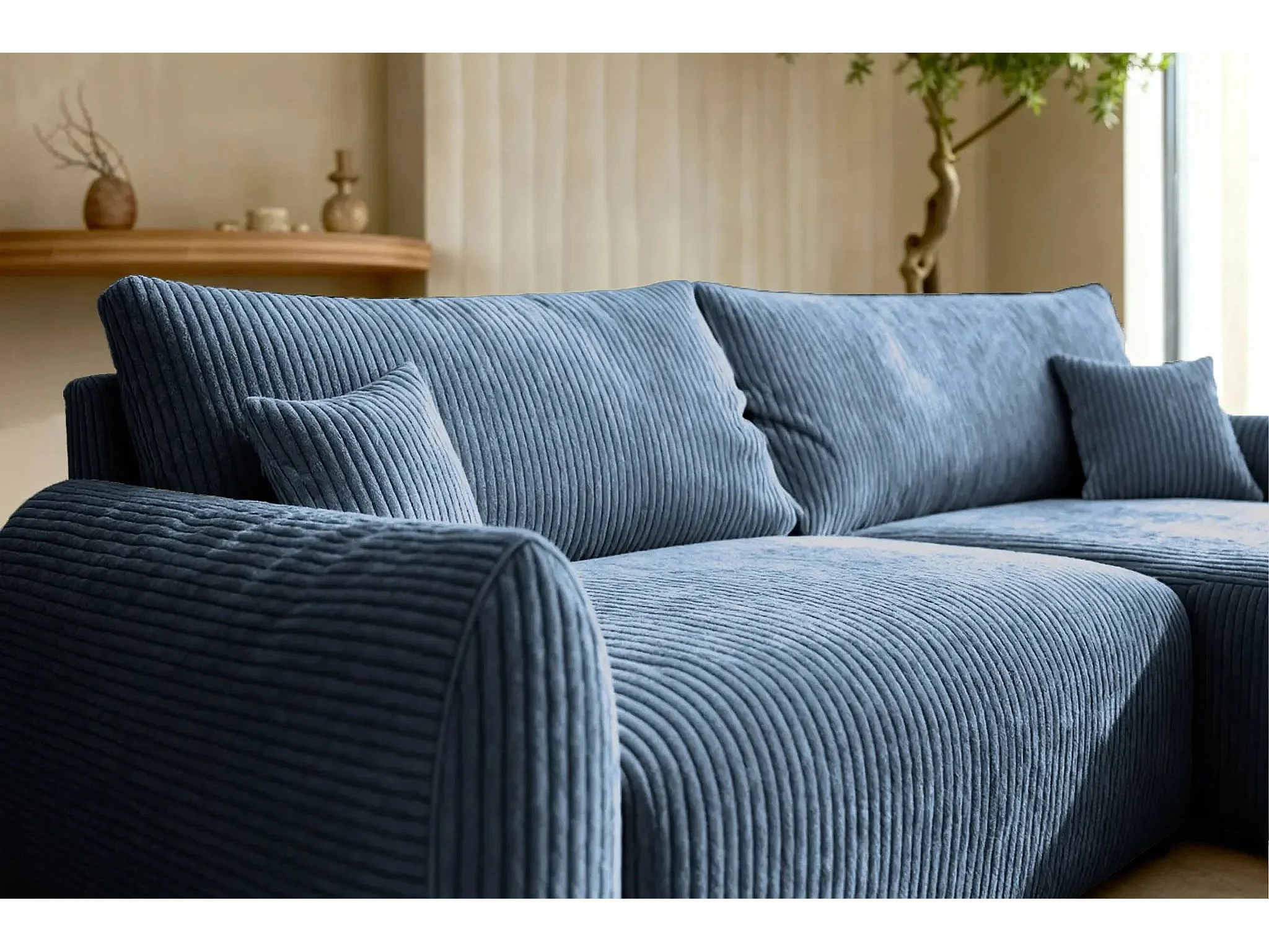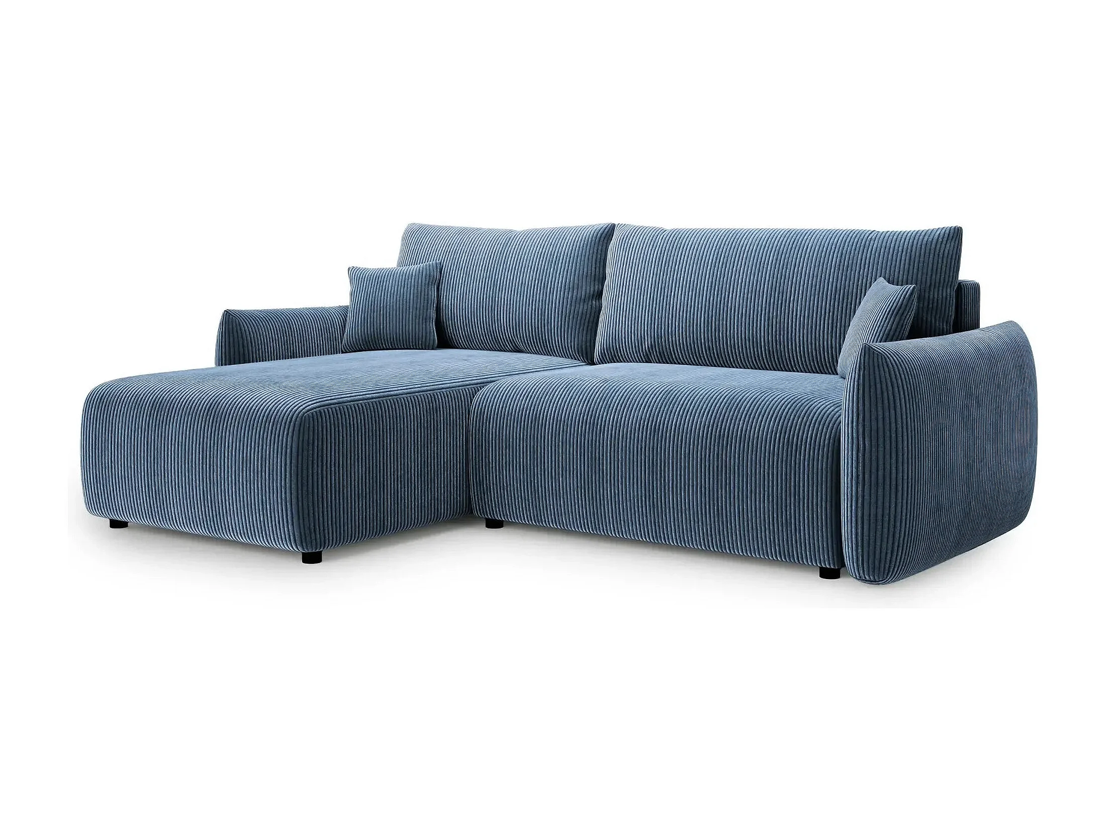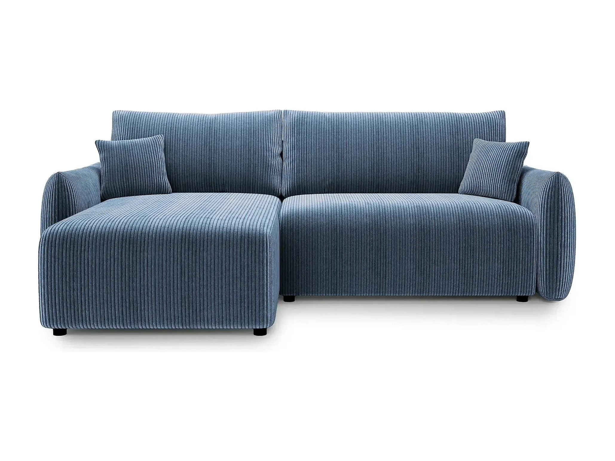 ELIO - Canapé d'angle convertible petit velours côtelé 4 places - Bleu