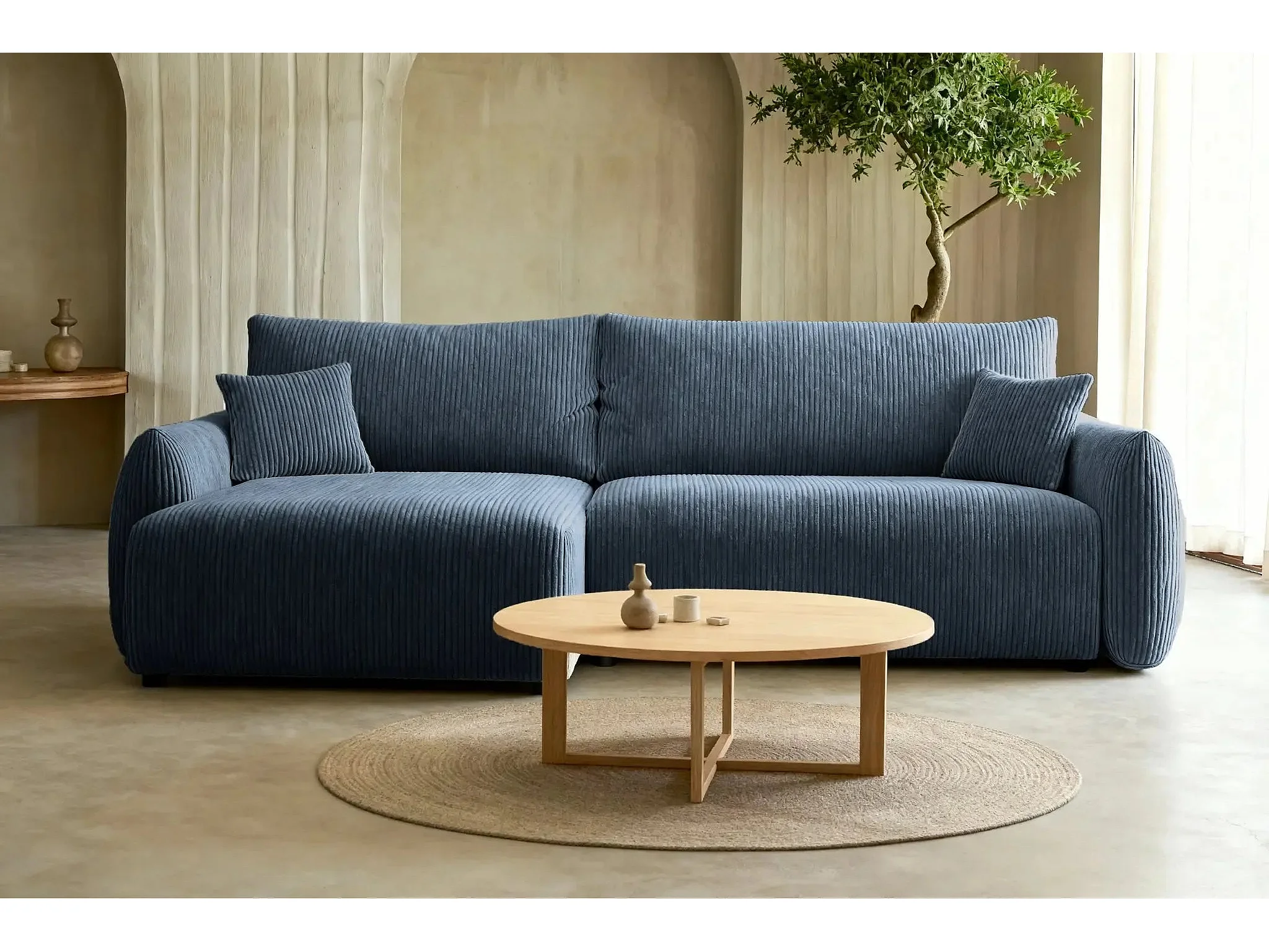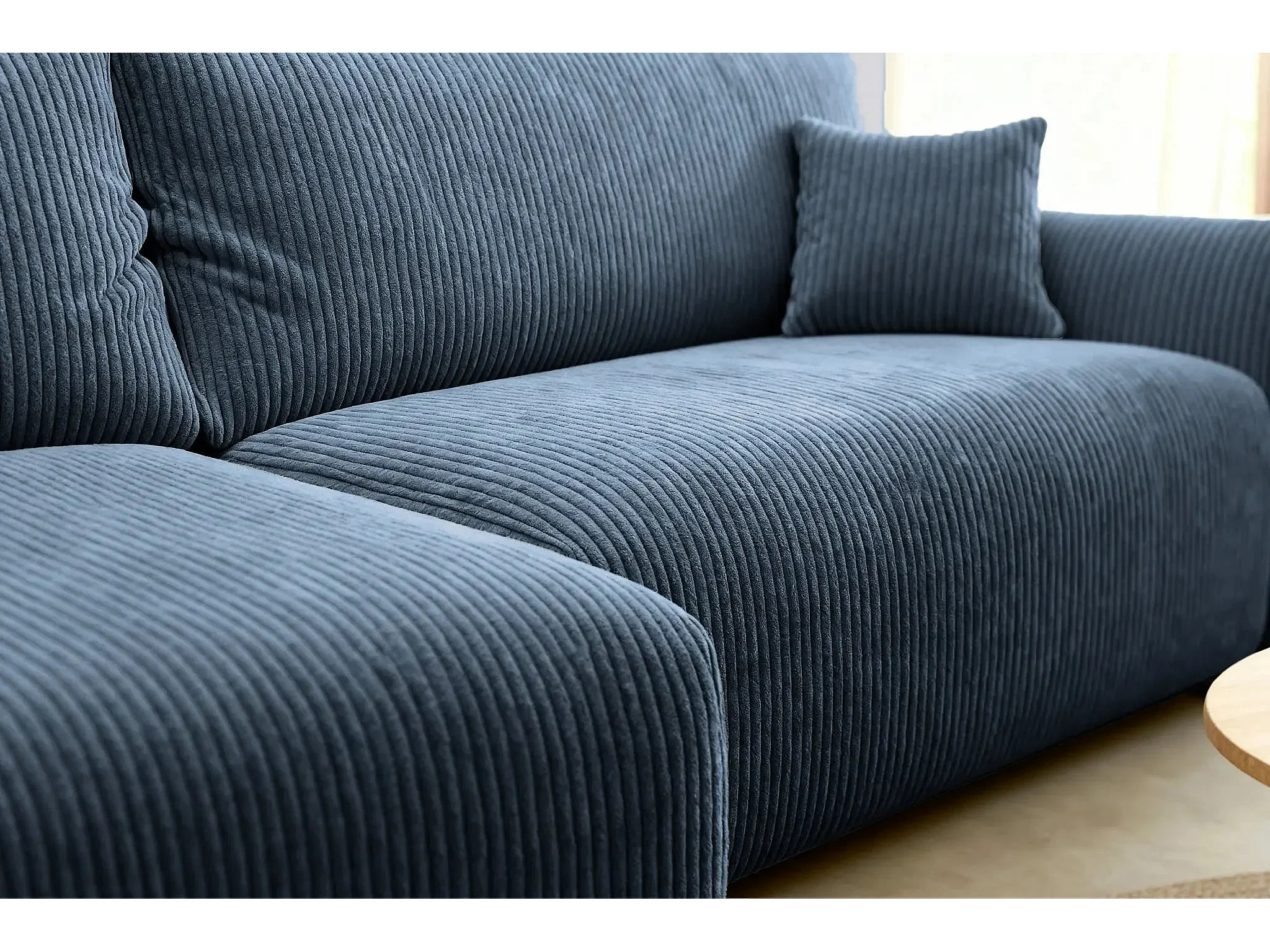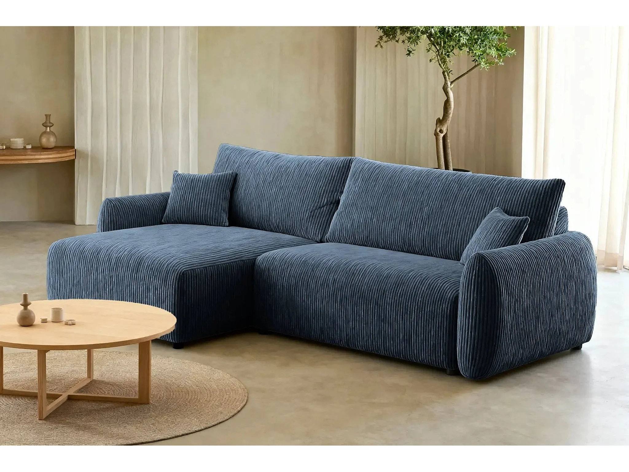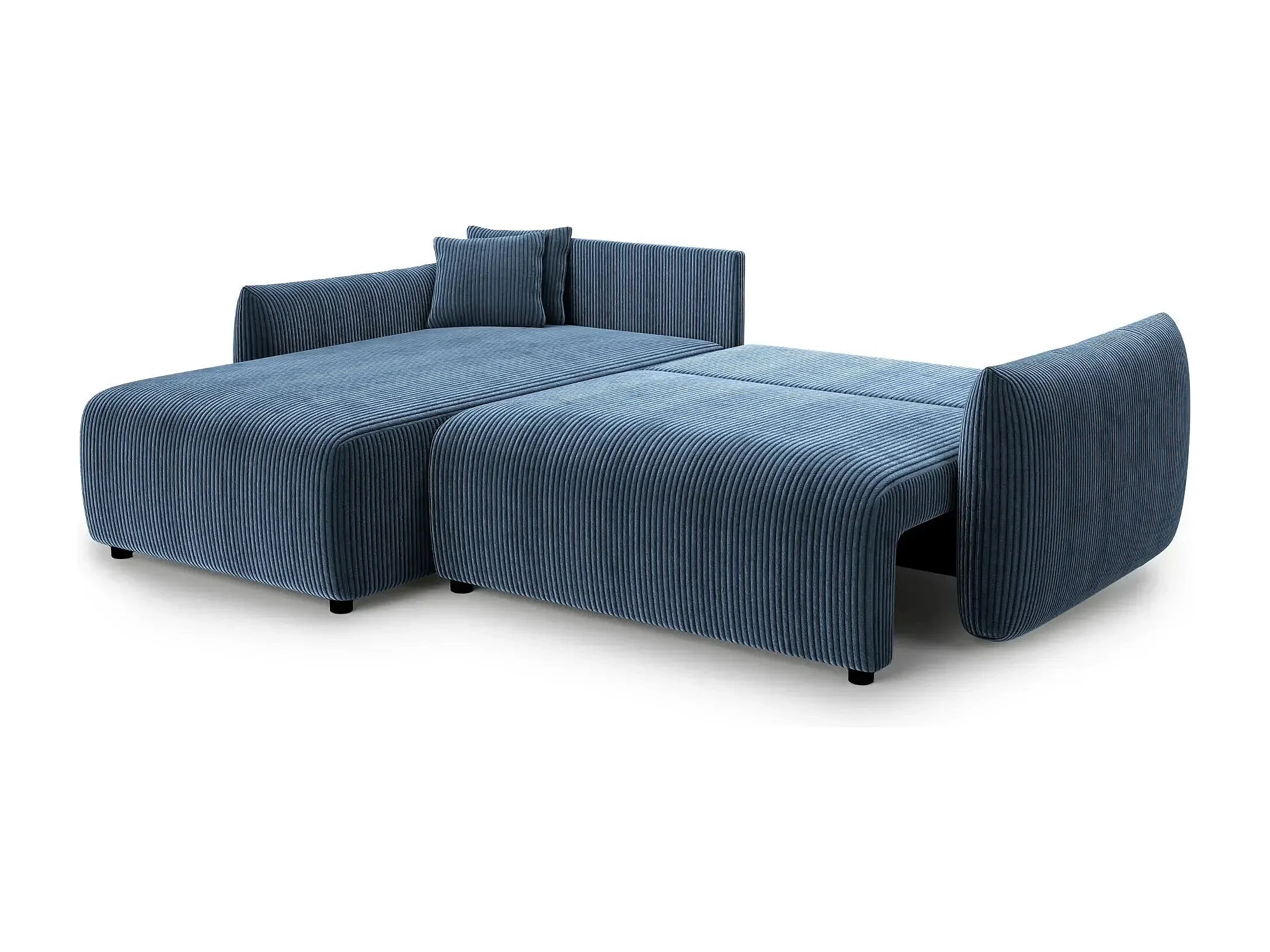 ELIO - Canapé d'angle convertible petit velours côtelé 4 places - Bleu