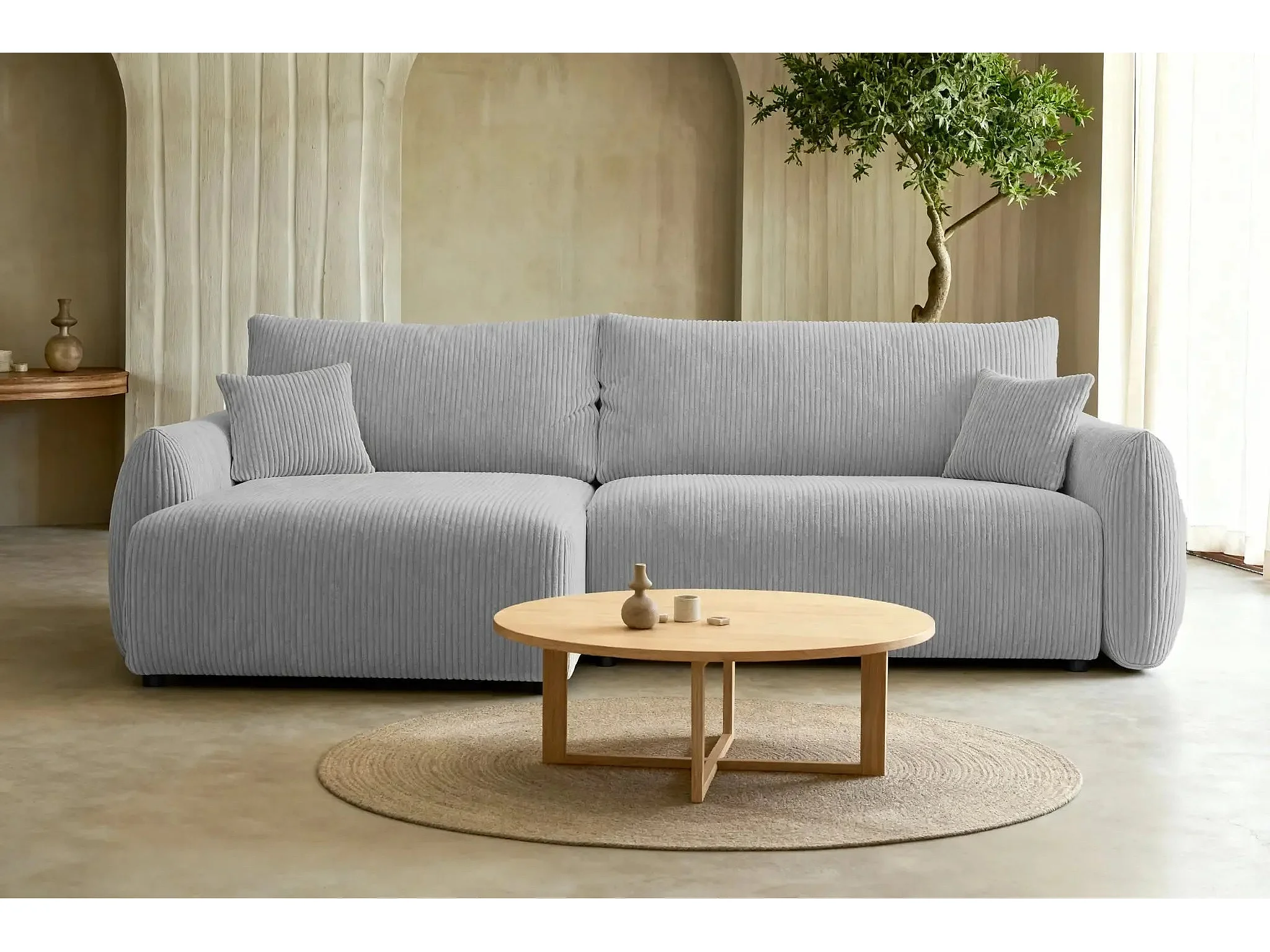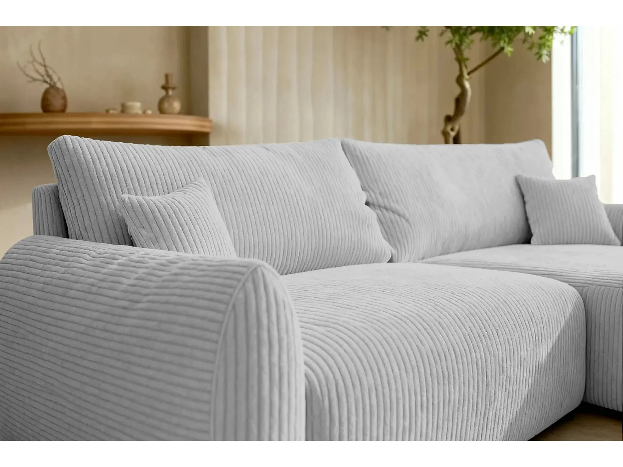 ELIO - Canapé d'angle convertible petit velours côtelé 4 places - Gris clair