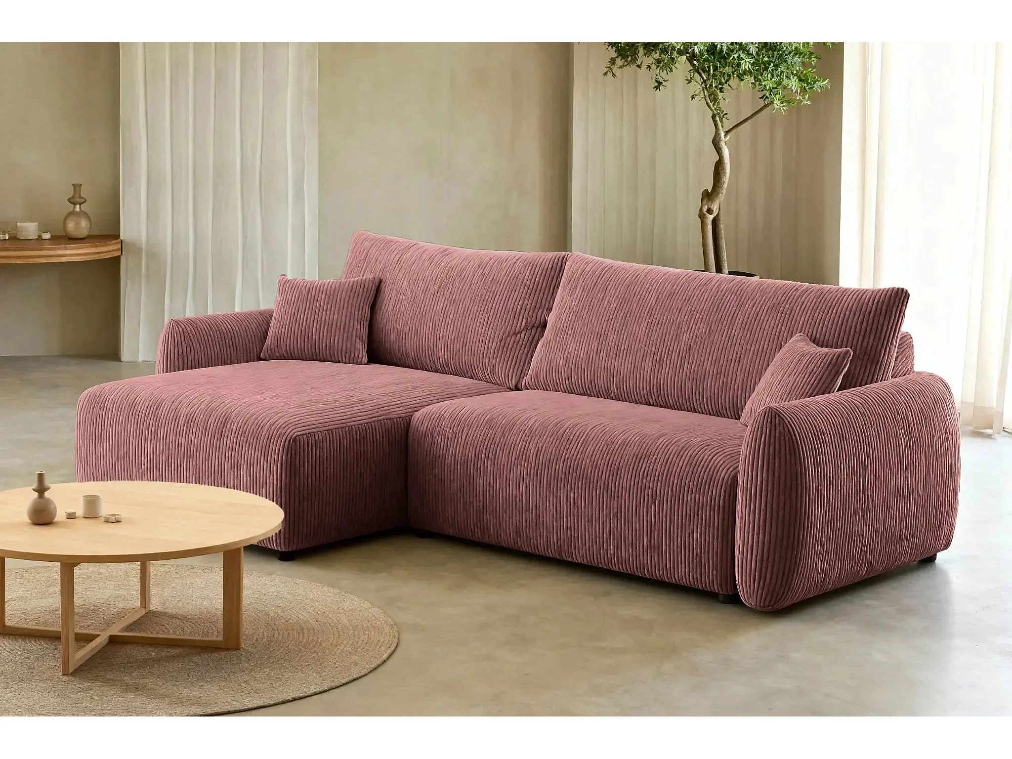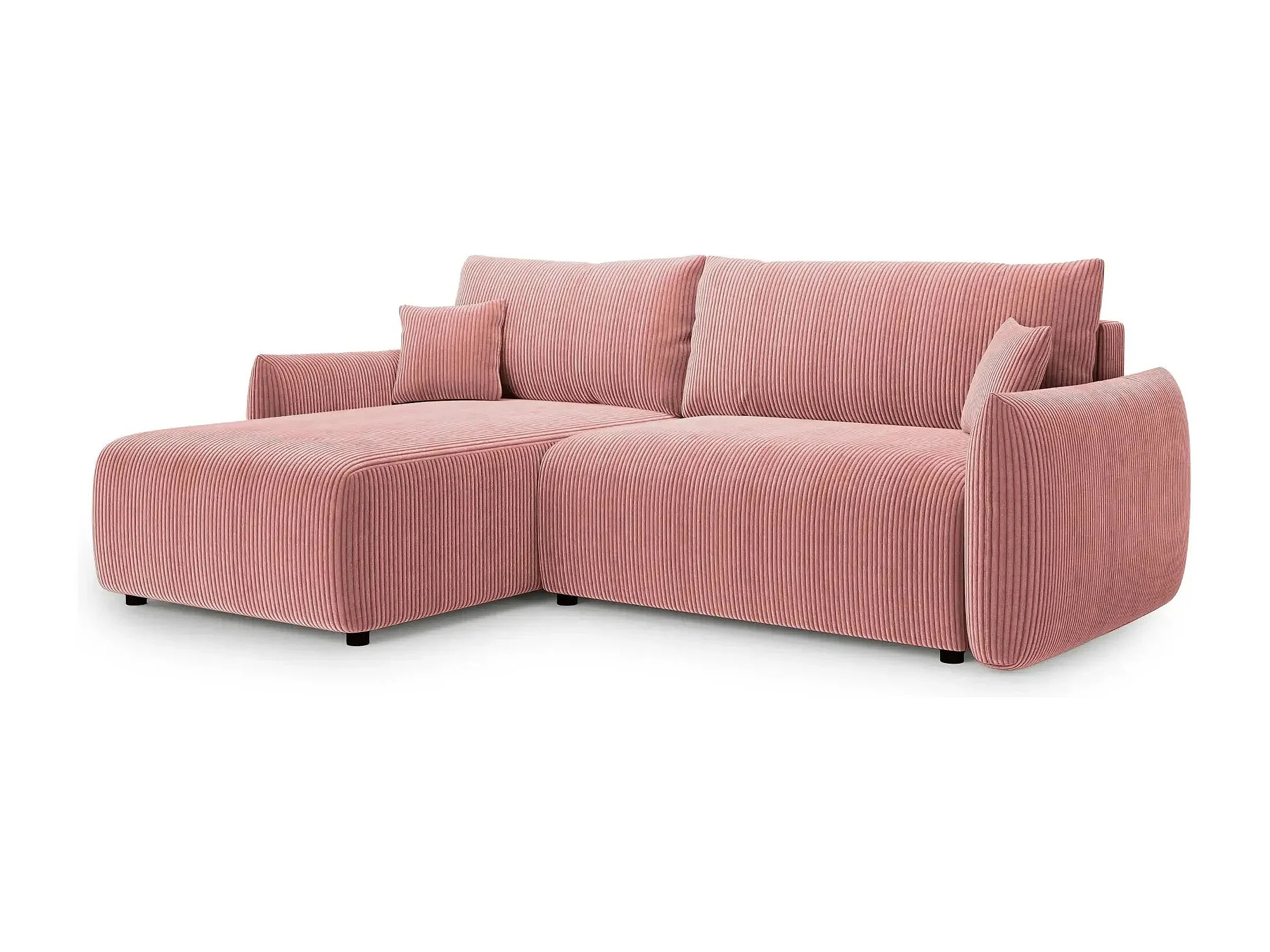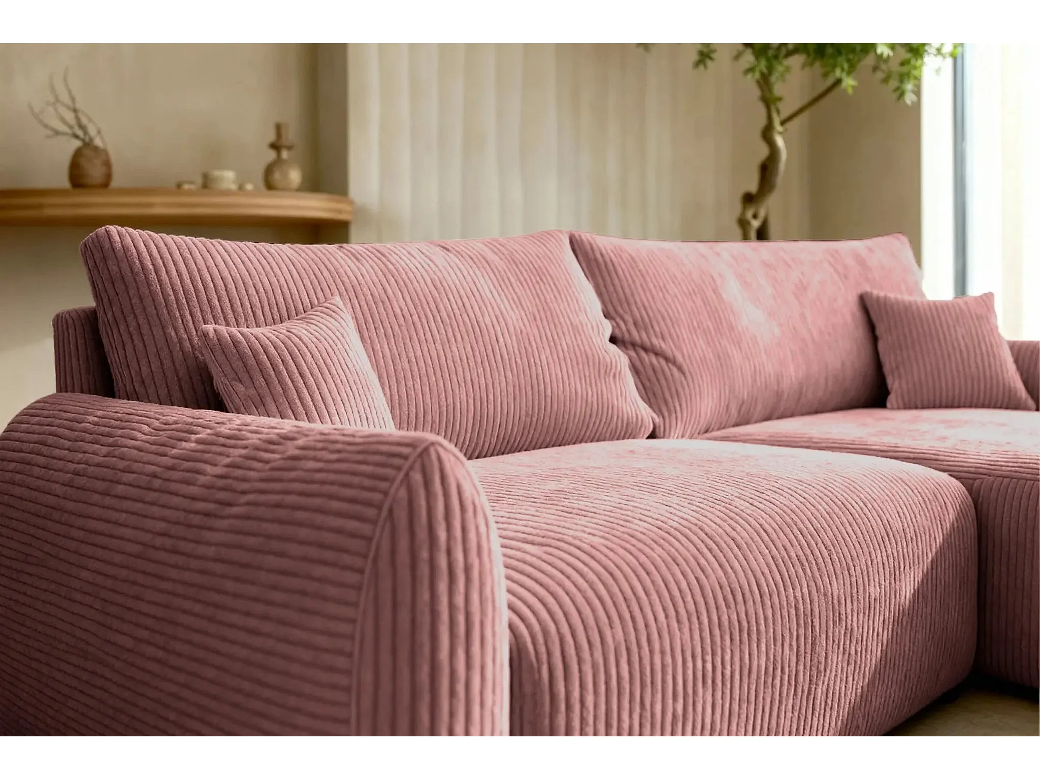 ELIO - Canapé d'angle convertible petit velours côtelé 4 places - Rose